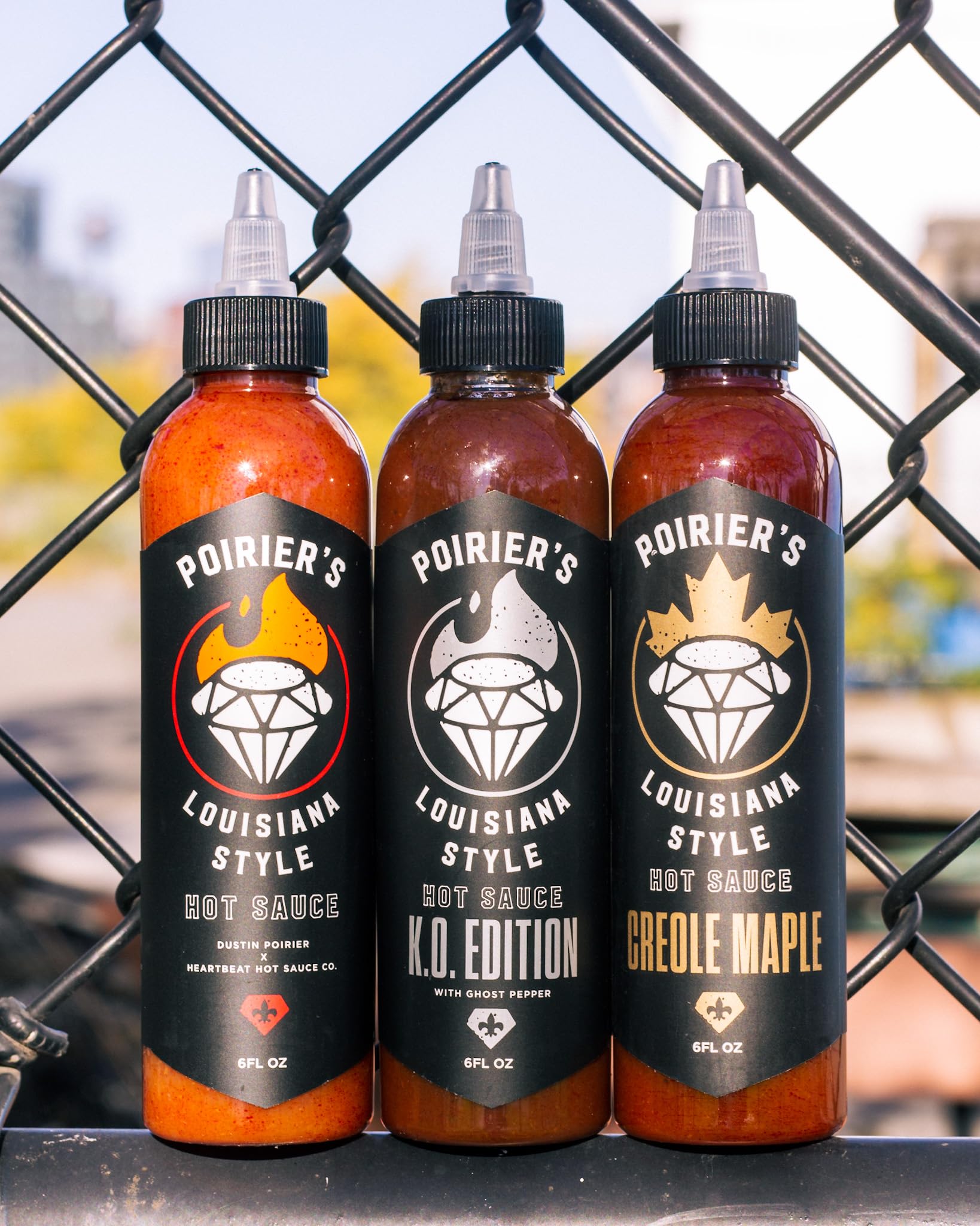- Q: What are the heat levels of each hot sauce in the trio? A: The Heatonist Dustin Poirier's Louisiana Style Hot Sauce Trio features three sauces with varying heat levels: Poirier's Creole Maple has a heat level of 4 out of 10, KO Edition has a heat level of 6 out of 10, and Traditional Hot Sauce has a heat level of 3 out of 10.