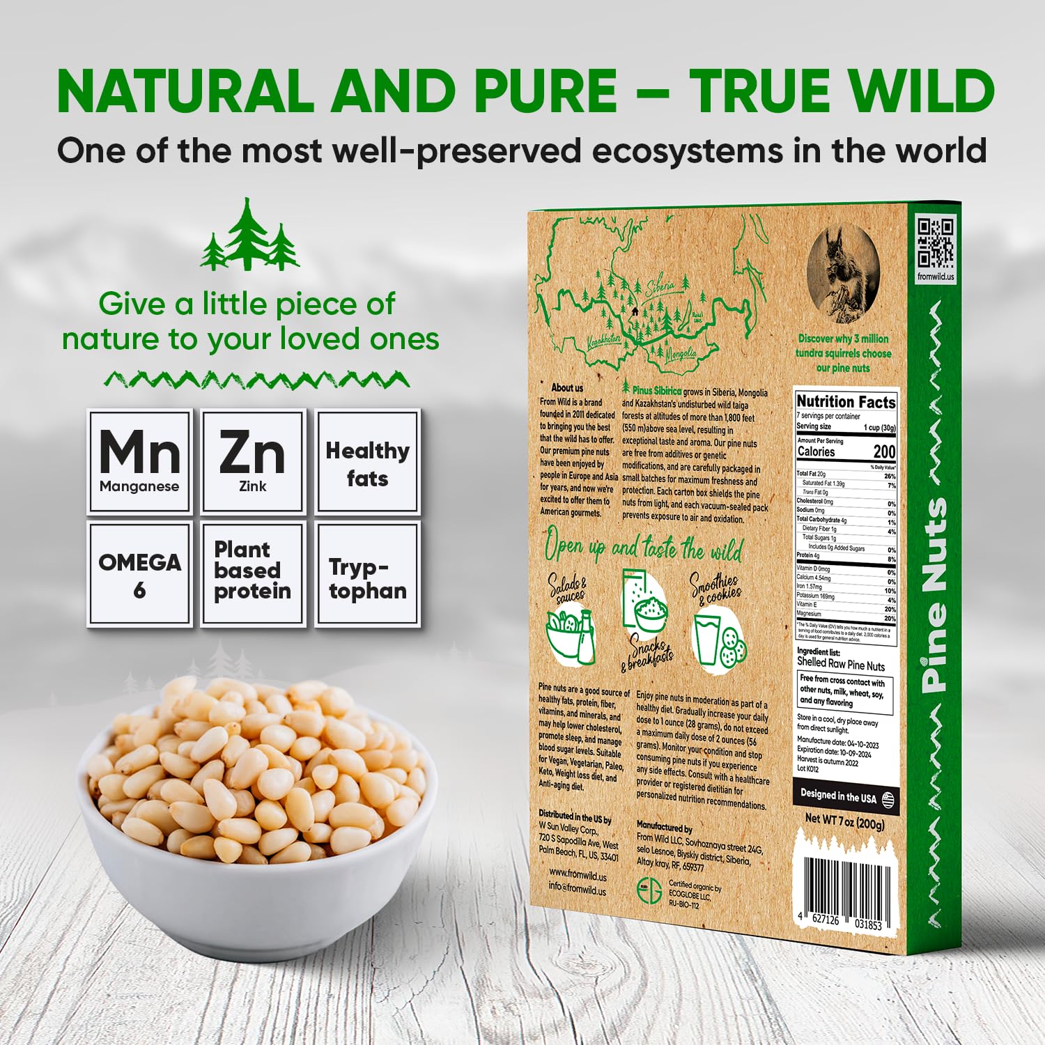 - Q: Where do these organic pine nuts come from? A: Our organic pine nuts are sourced from one of the world’s most well-preserved ecosystems, specifically from Siberian pine trees. They are harvested sustainably to ensure a minimal environmental impact, reflecting our commitment to eco-friendly practices.
