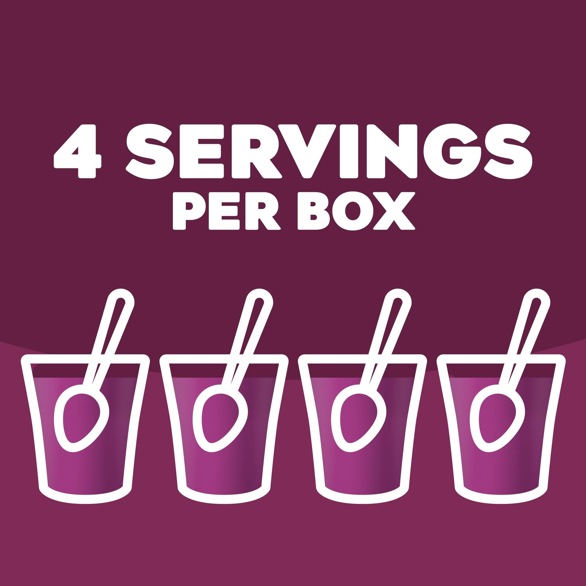 - Q: How many servings does one box of Jell-O Black Cherry Gelatin Mix provide? A: One 3 oz. box of Jell-O Black Cherry Instant Gelatin Mix makes four 1/2-cup servings, making it perfect for serving a small group or family.