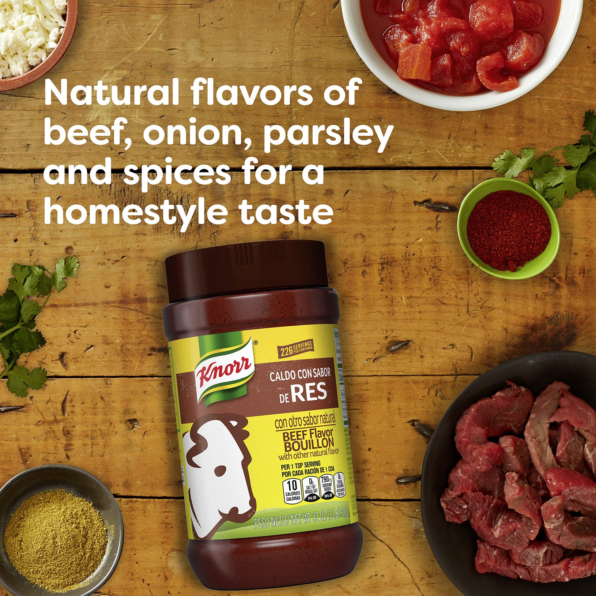 Let the natural flavors of Knorr Beef Bouillon take your meals to the next level. Perfect for enhancing flavor in any recipe, including beef dishes, soups, broth, stews, sauces, pastas, and more, this natural beef stock contains zero artificial flavors, colors, preservatives or added MSG. Knorr Beef Flavor Bouillon is a fat- and cholesterol-free granulated bouillon that blends the flavors of beef, herbs and spices for an authentic, homestyle taste. An ultimate beef base for a variety of dishes, it is an essential pantry item for every home cook. Two teaspoons of granulated bouillon make one cup of beef broth and are equivalent to one bouillon cube. Plus, it dissolves more quickly than cubes! This simple ingredient gives your recipes a rich, savory depth and satisfying complexity. Looking for more cooking ideas with this versatile beef bouillon? You can use Knorr Beef Bouillon in recipes like Beef Ribs, gravies, rices, and roasts, as well as many Latin American dishes. Long known for its authentic, home-cooked flavors, Knorr bouillon also comes in Tomato Chicken, Chicken, Shrimp, and Reduced Sodium Chicken varieties and a range of sizes. We believe that good food matters and everyday meals can be just as magical as special occasions. Knorr products owe their taste and flavors to the culinary skills and passion of our chefs. We source high-quality ingredients to create delicious side dishes, bouillons, sauces, gravies, soups, and seasonings enjoyed by families everywhere.
