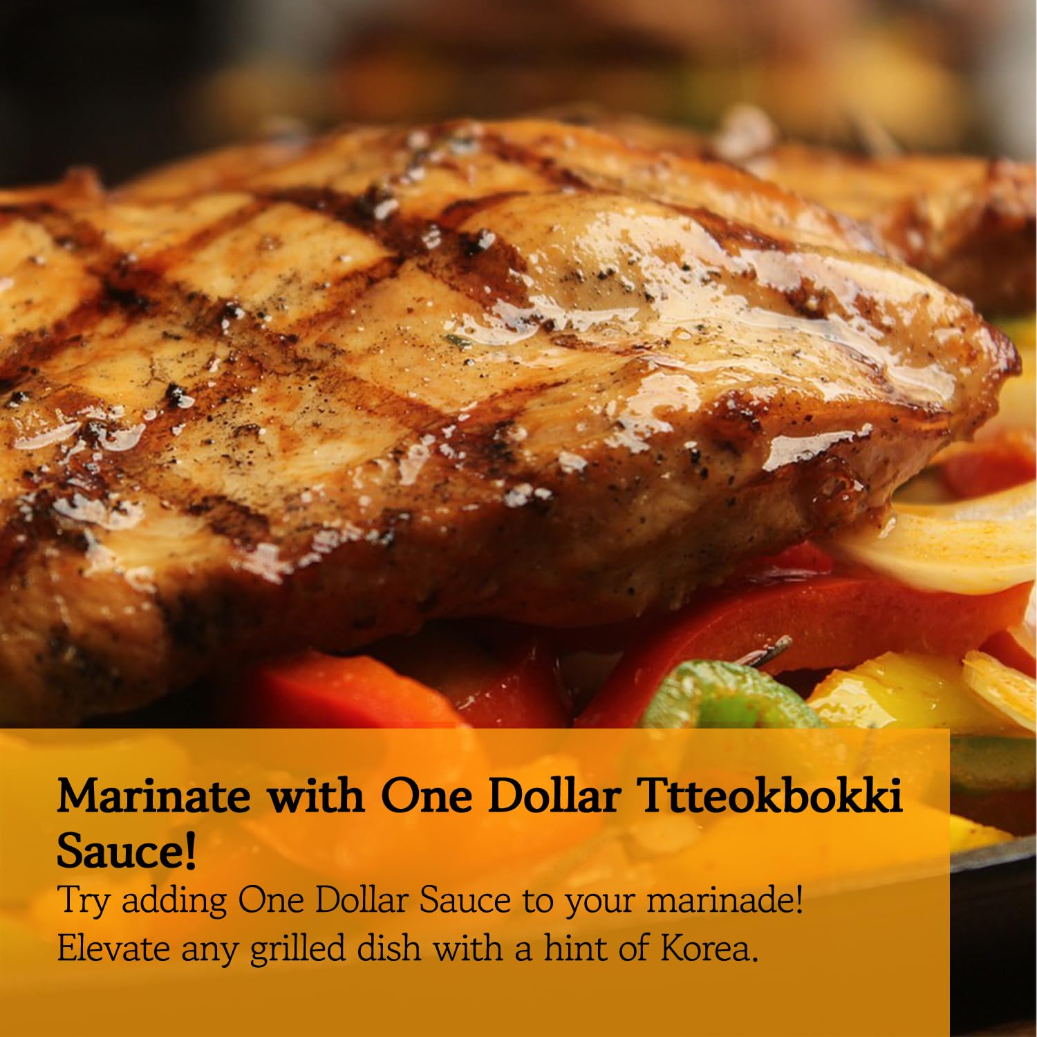 Q: What is the packaging size of the One Dollar Tteokbokki Sauce?A: The One Dollar Tteokbokki Sauce comes in a convenient pack of 10, with each serving size being 0.7 oz, perfect for single use and easy storage.