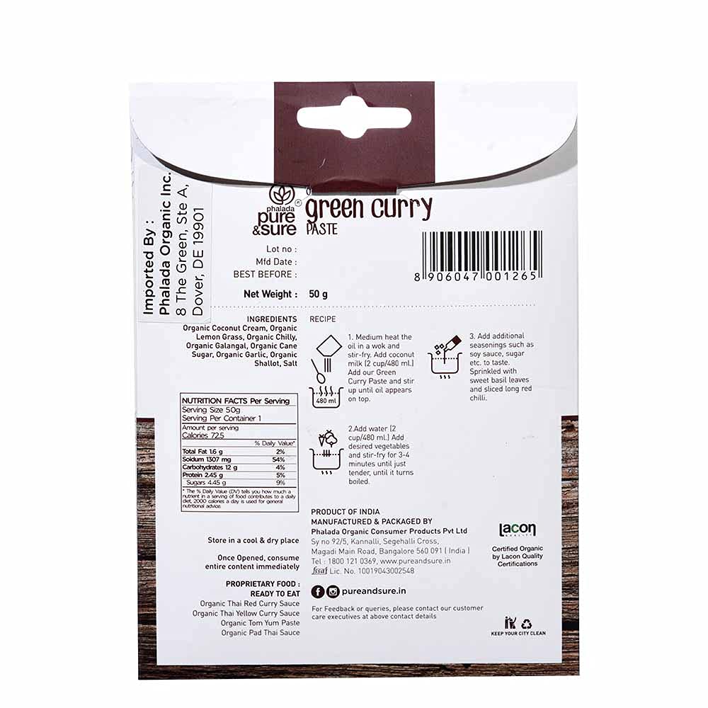 Q: What ingredients are in Pure & Sure Organic Thai Green Curry Paste?A: Pure & Sure Organic Thai Green Curry Paste is made from a blend of organic ingredients, including coconut cream and a variety of aromatic herbs and spices, ensuring a rich flavor without preservatives or artificial additives.