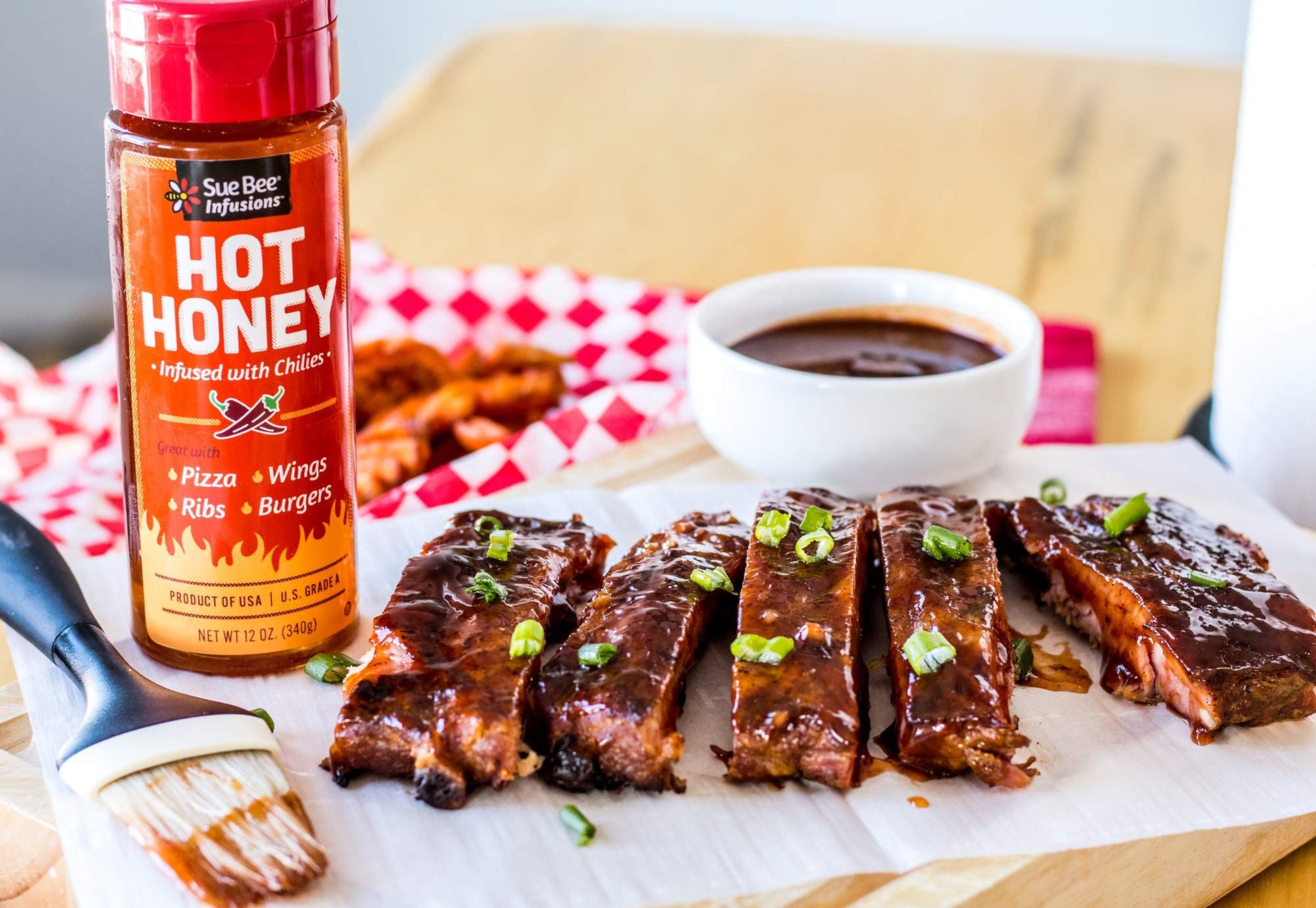 Q: How can I use Sue Bee Infusions Hot Honey in my cooking?A: You can use Sue Bee Infusions Hot Honey as a topping or flavor enhancer for various dishes, including pizza, burgers, wings, and ribs, or as a unique ingredient in cocktails.
