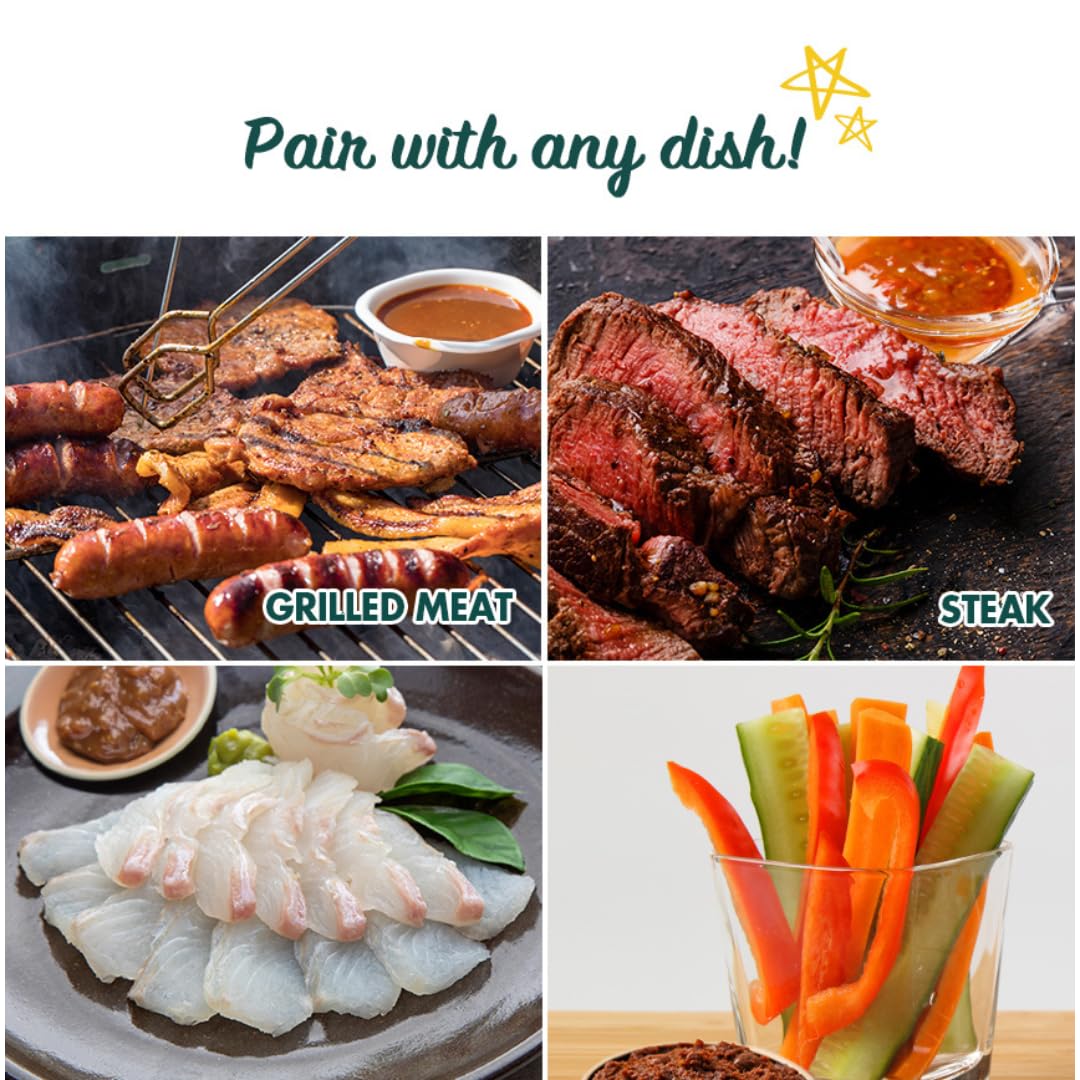 Q: What types of dishes can I pair with Ssamjang BBQ Sauce?A: This sauce is incredibly versatile and can be used as a dipping sauce, marinade, or topping. It complements grilled meats, sandwiches, dumplings, vegetables, and even nachos, adding a unique Korean flavor to a variety of dishes.