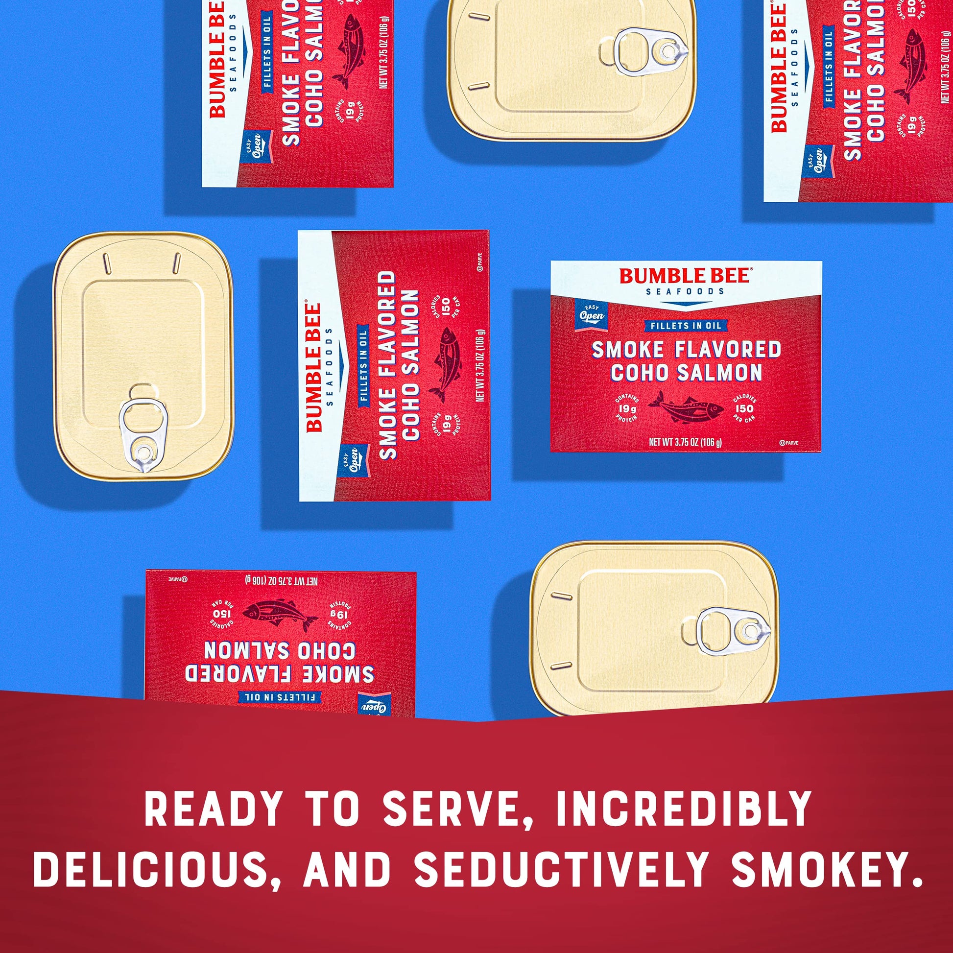 - Q: What are the nutritional benefits of Bumble Bee Smoke Flavored Red Coho Salmon Fillets? A: Each 3.75 oz can of Bumble Bee Smoke Flavored Red Coho Salmon Fillets provides 19 grams of protein, making it a great source of protein for snacks or meals. Additionally, it is gluten-free and keto-friendly, catering to various dietary preferences.