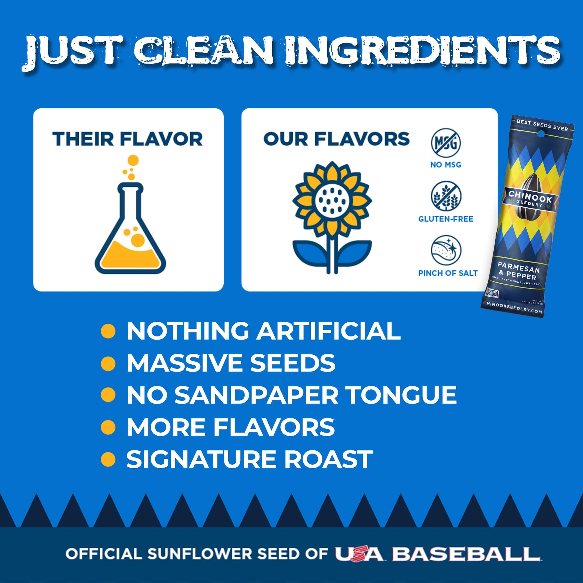 LOW SALT SUNFLOWER SEEDS: Bold, different, and delicious. We ve heard people say, I didn t even know I liked sunflower seeds until I tried your Parmesan & Pepper. Whether you re a veteran seeder or a little newer to the game, Parm & Pep is the flavor combo that will forever change the way you snack. | BETTER TASTING, BETTER FOR YOU: In-shell sunflower seeds are a high protein snack with healthy fats, perfect for any health conscious individual. Dried, free of MSG and nothing artificial! Perfect grab and go snack when you hit the trail. | DIET FRIENDLY: Great snack for keto, vegan, paleo, vegetarian, allergen free, and low carb diets. Take a pack when you travel and munch on the roasted kernels. An excellent addition to your keto diet plan! Makes a great stocking stuffer! | FOR ON THE GO ADVENTURE: Alleviate hunger any time by bringing a pack or two of these sun flower seeds inside your bag. This is the ideal snack whenever you are watching baseball games, going on road trips, cycling, camping with friends, fishing, hunting, disc golfing, or just watching movies. The official sunflower seed of USA Baseball and partnered with Bobby Witt Jr. of the Kansas City Royals, it