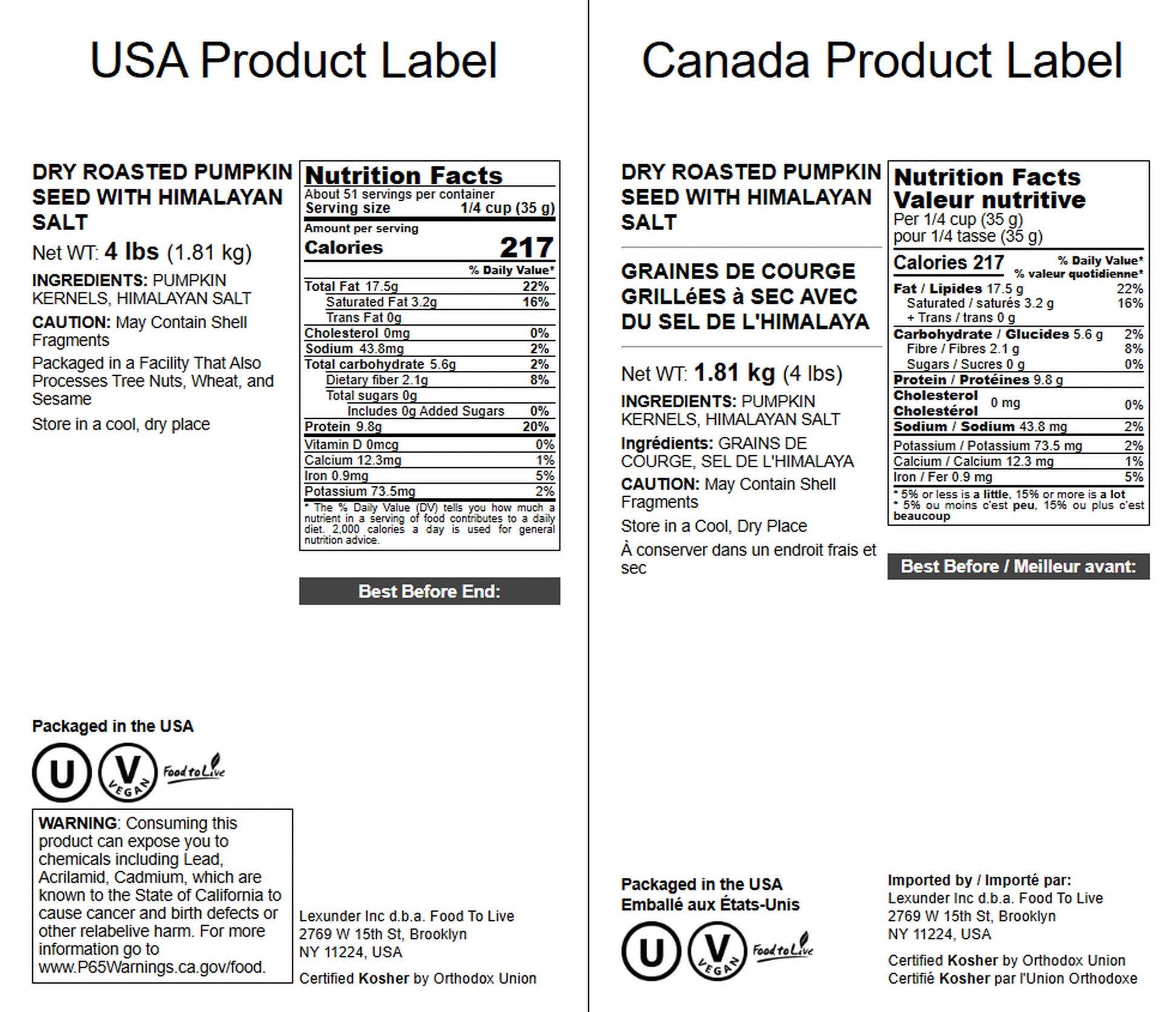 - Q: Are these pumpkin seeds certified kosher? A: Yes, Food to Live Dry Roasted Pumpkin Seeds are certified kosher, making them suitable for those who follow kosher dietary laws.