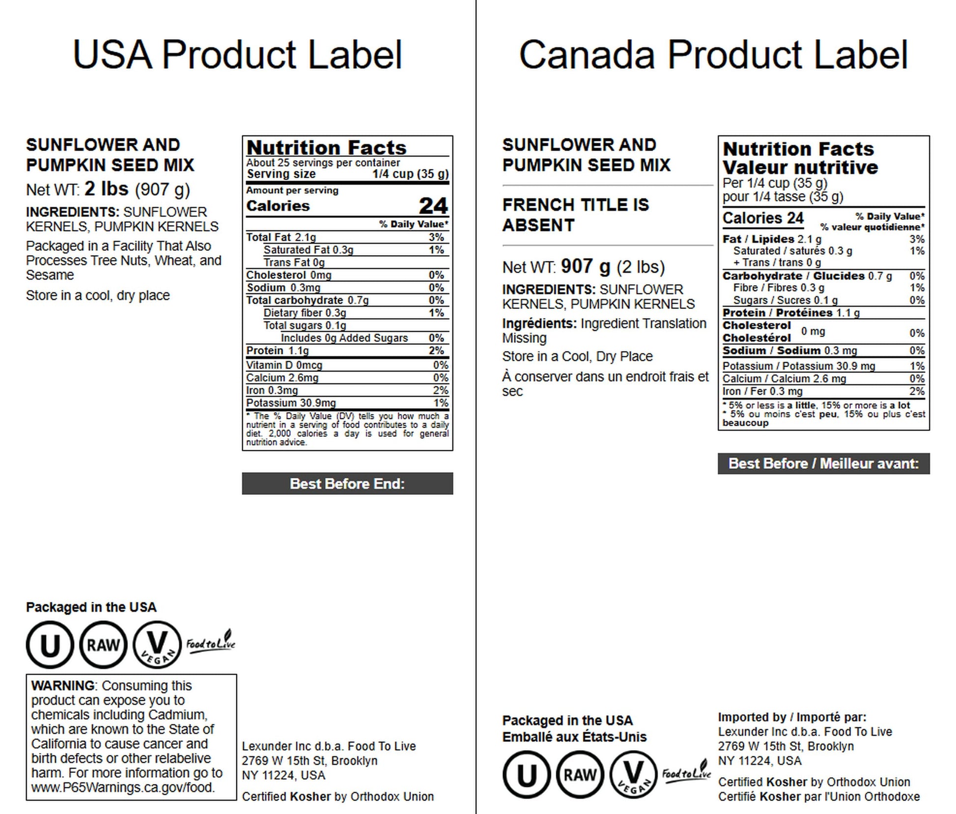 Food to Live Sunflower and Pumpkin Seed Mix, 2 Pounds - Natural Snack, Rich in Protein, Perfect for Snacking, Baking and Salads,