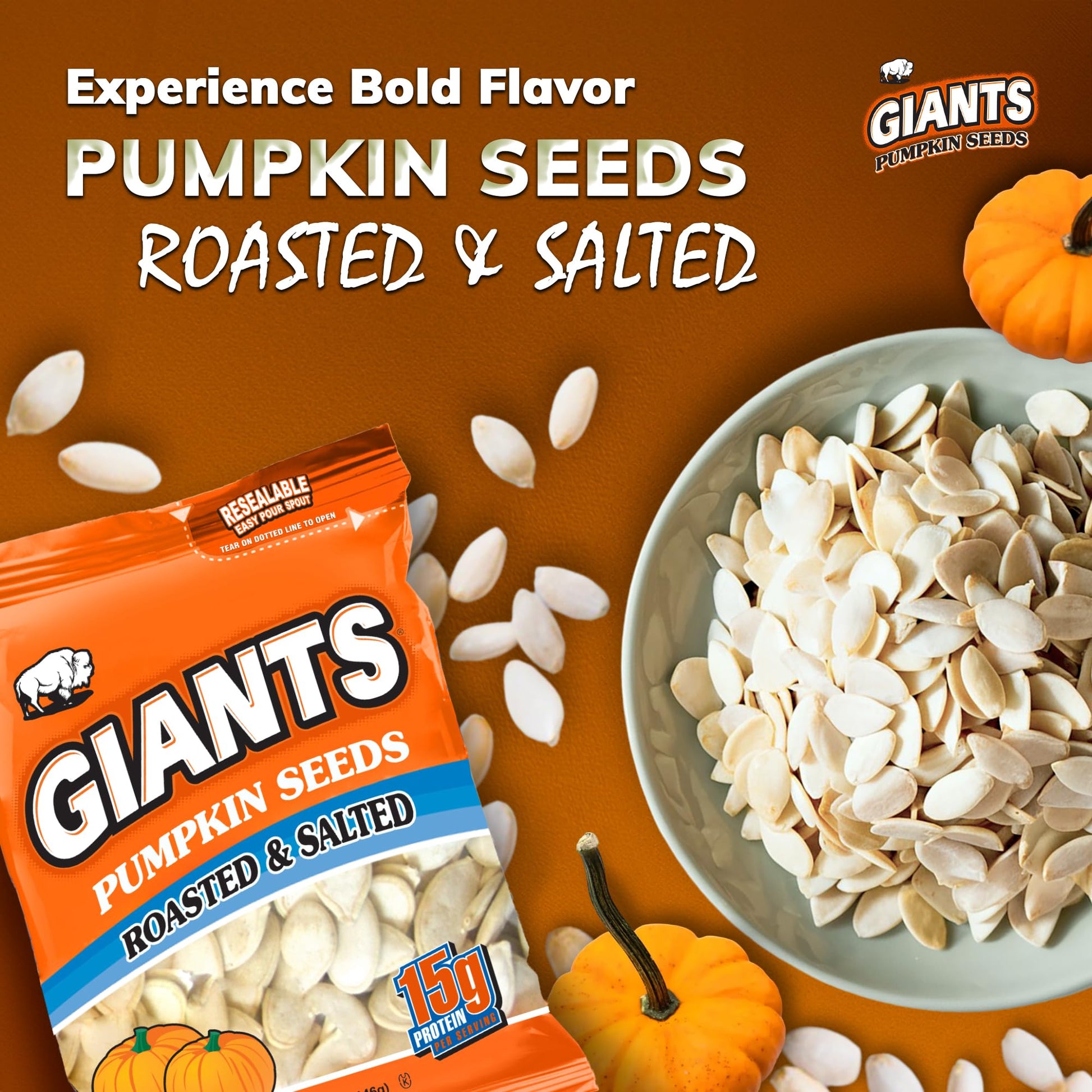 Giants Pumpkin Seeds - Pumpkin Seeds In Shell, Pumpkin Seeds To Eat, Roasted And Salted, Whole Pumpkin Seeds With Shell, High Protein Snack With 15G Protein Per Serving - 5.15 Oz (Pack Of 2)