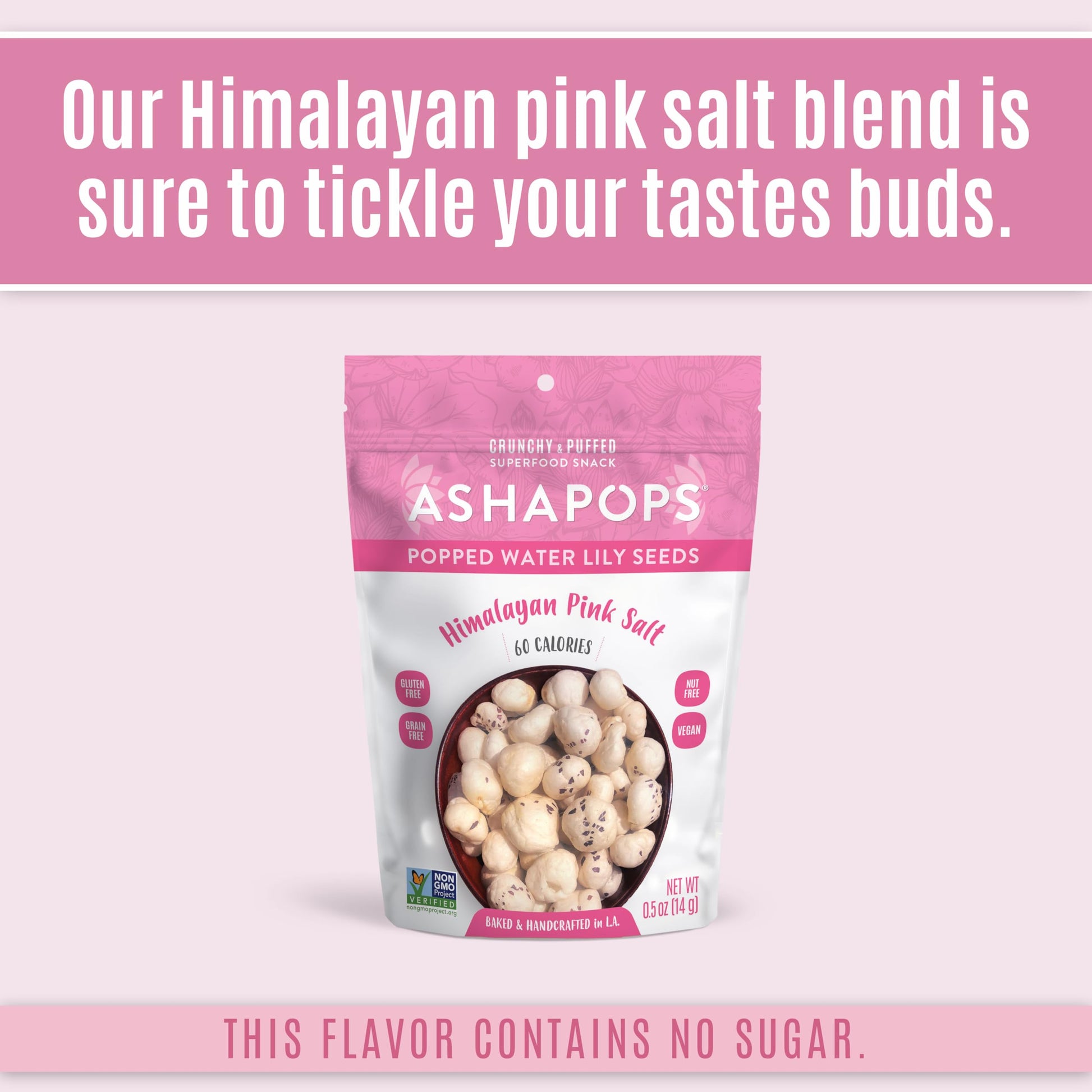 AshaPops Himalayan Pink Salt Flavored Popped Water Lily Seeds, 0.5 oz (Pack of 12) - Gluten-Free, Vegan, Paleo, Nut-Free, Corn-F
