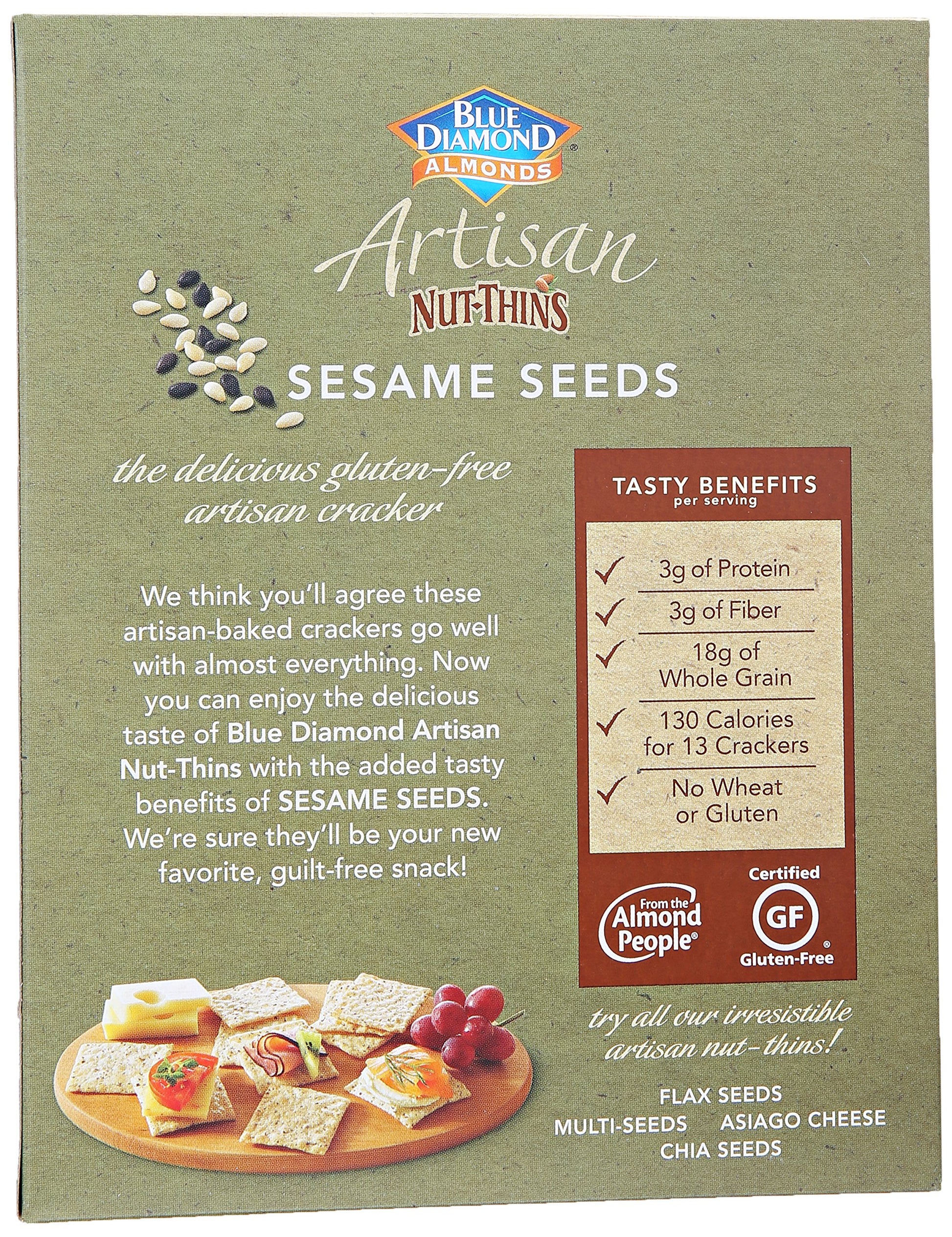 Blue Diamond Almond Artisan Nut Thins Cracker Crisps, Sesame Seeds, 4.25 Ounce