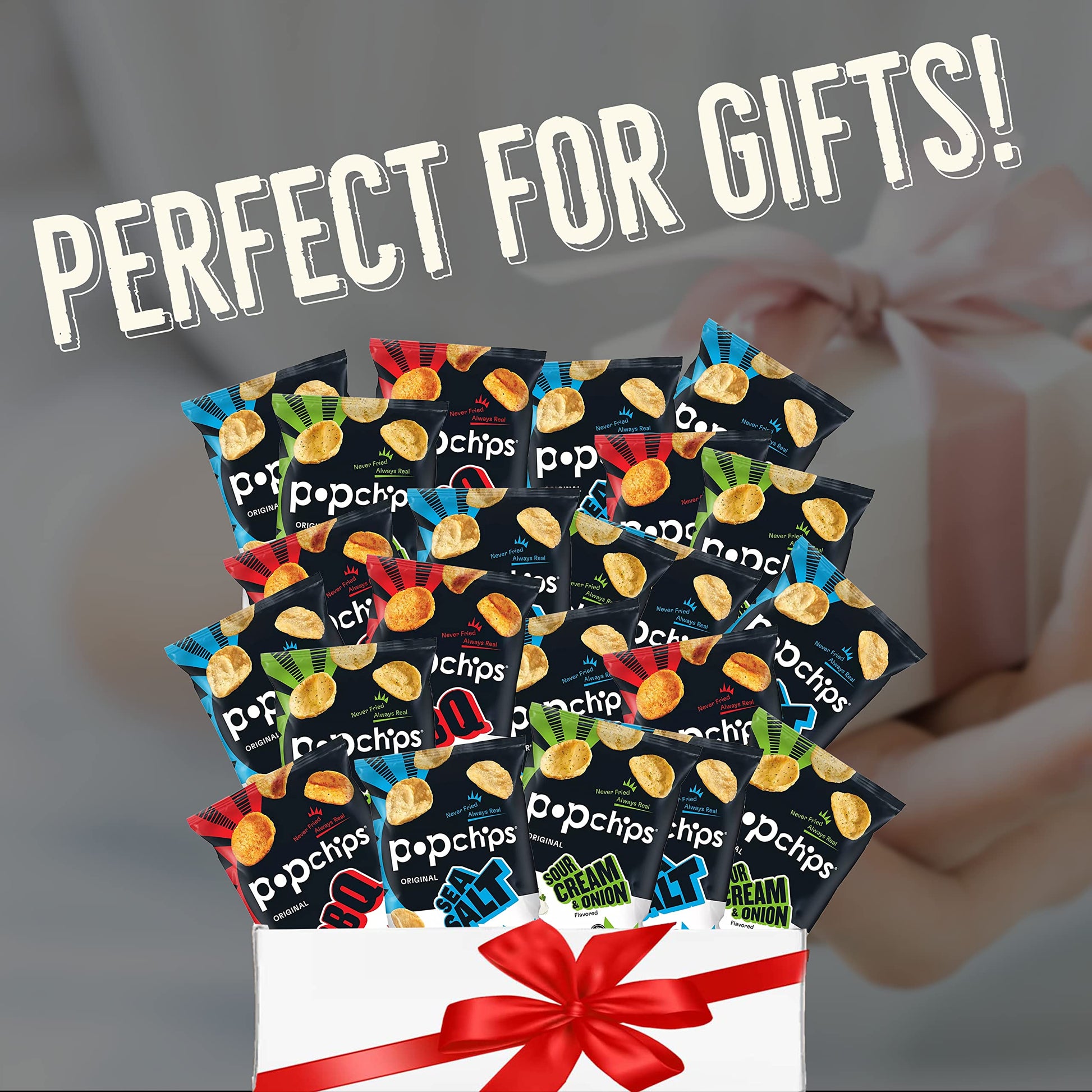 Our PopChips Fun pack includes an assortment of your favorite Popchips treats! Everyone loves a bit of variety, especially when it combines three all-time favorite flavors in one pack! Perfect for lunches, on-the-go, or a break between video calls. Enjoy a bulk variety of classic & healthy snacks.