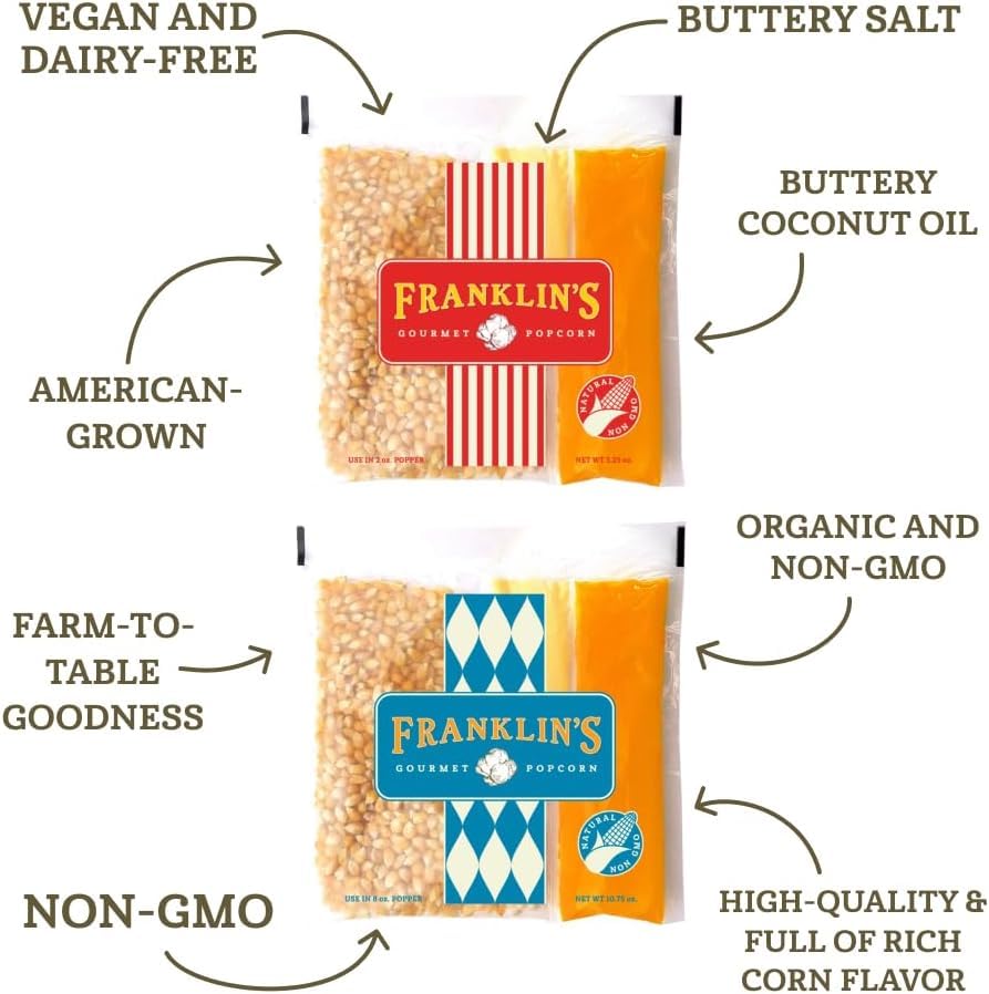 View compareFranklins Gourmet Popcorn All-In-One Pre-Measured Packs - 4oz. Pack of 10 - Butter Flavored Coconut Oil + Butter Salt Popcorn Se