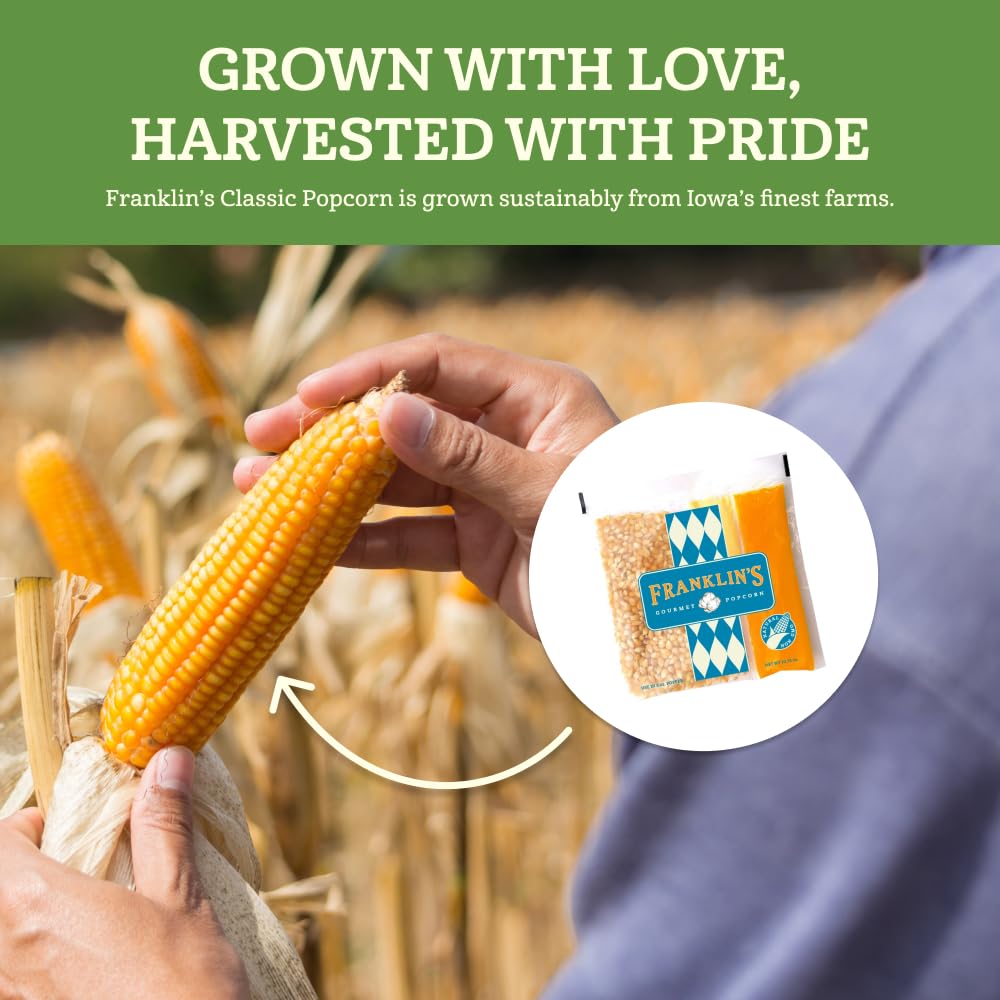 In July of 2002, we realized there was a need to make delicious, quality movie theater popcorn flavor at home. We were immediately frustrated by the lack of movie theater level popping corn to make at home, and especially frustrated by the lack of gluten free, vegan, healthy and naturally sourced options. We know there is no substitute for great popcorn made the right way, so we decided to create Franklins. We believe in providing uncompromising quality and flavor, and always doing right by our customer. We have been proudly bringing fresh, natural, healthy popcorn and supplies with all the movie theater taste right into your home for almost eighteen years, and look forward to many more.