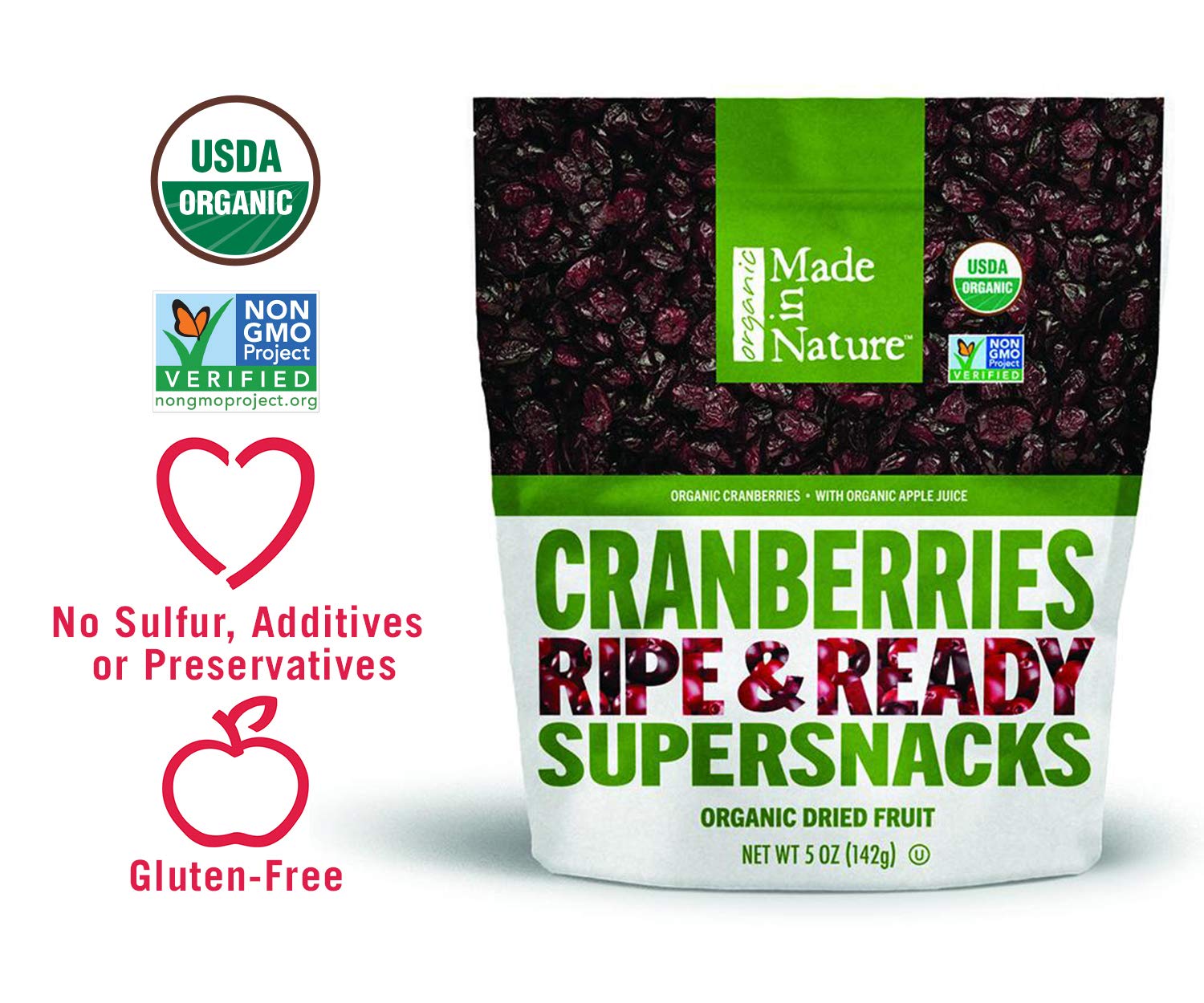 Made In Nature Organic Cranberries, Dried and Unsulfured, 5 Ounce Bag