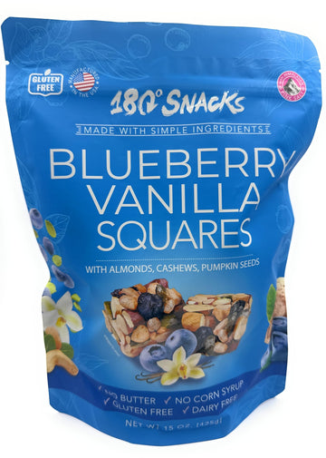 180 Snacks, Blueberry Vanilla Squares, with Almonds, Cashews, Pumpkin Seeds,