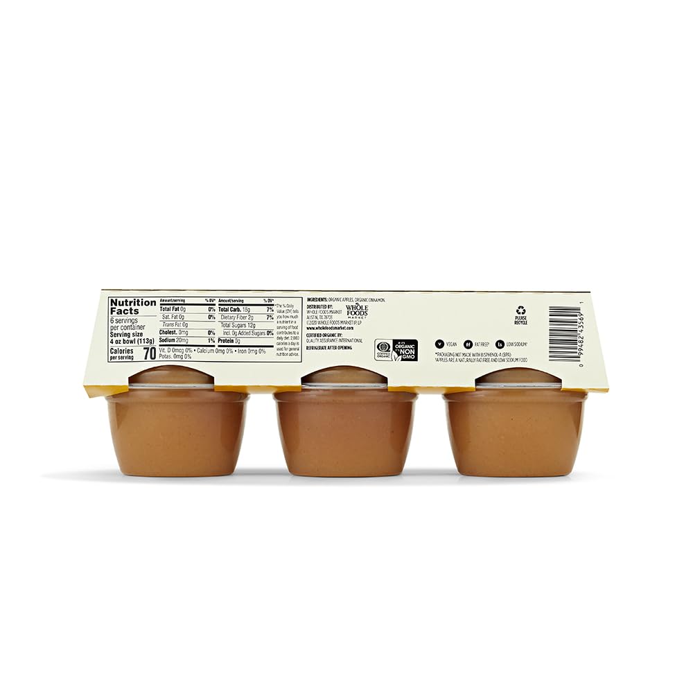 Q: What is the packaging size of the 365 Organic Cinnamon Applesauce?A: The product comes in a pack of 6, with each container holding 4 ounces of applesauce.