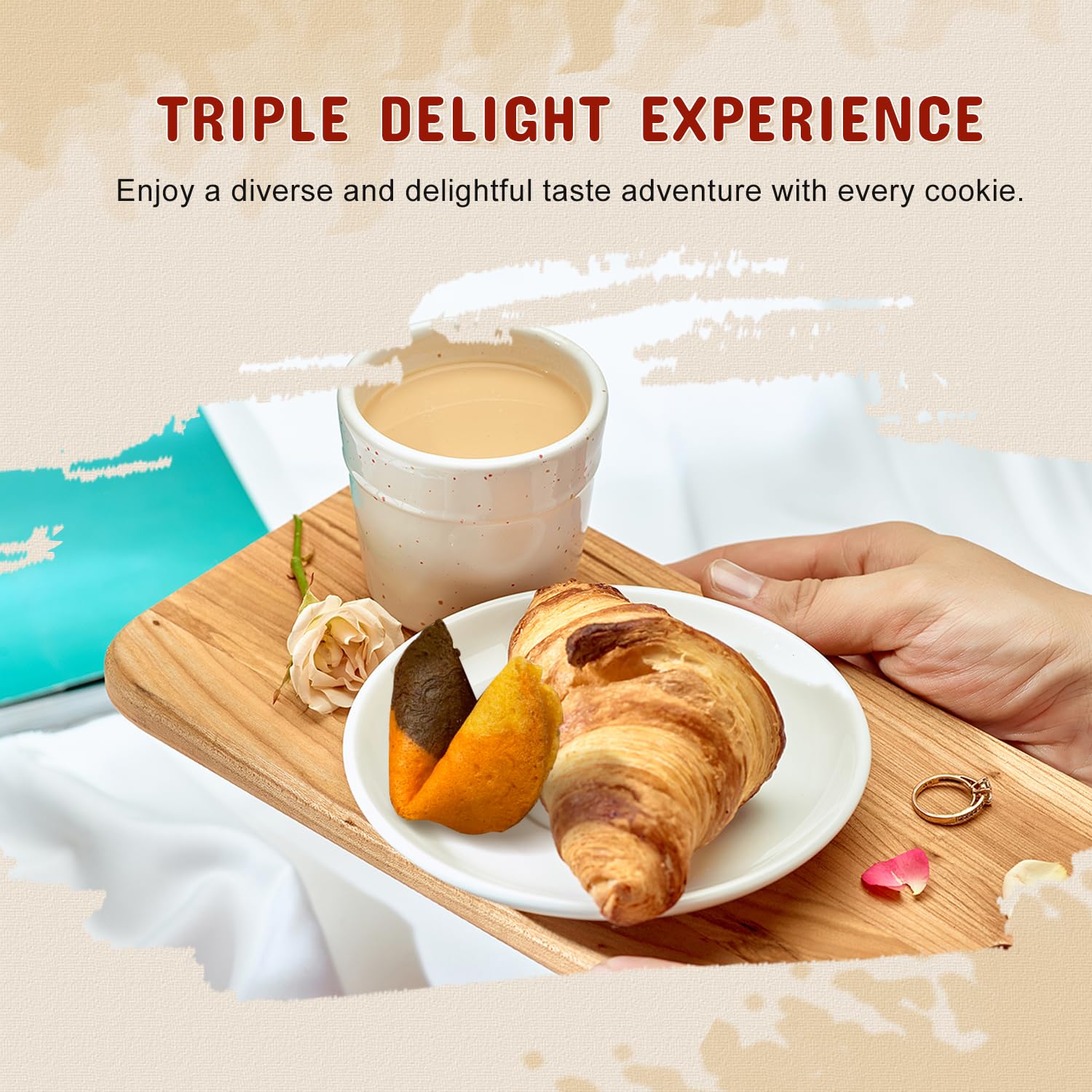 Q: What flavors are included in the 52USA Fortune Cookies?A: The 52USA Fortune Cookies come in a delightful 3-in-1 flavor variety, including Original, Chocolate, and Orange, allowing you to enjoy a unique taste experience with each cookie.