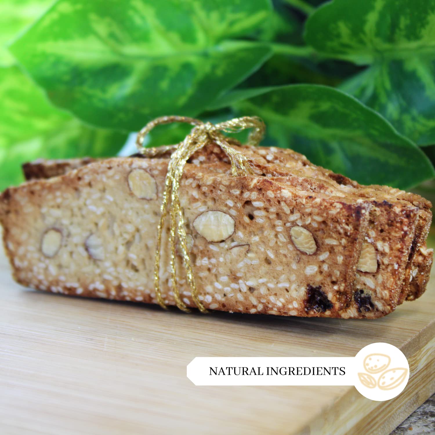 Q: What are Almondina Almond Cookies made of?A: Almondina Almond Cookies are made from all-natural ingredients, featuring roasted almonds and sesame seeds. They contain no cholesterol, added fats, salts, or preservatives, making them a healthier snacking option.