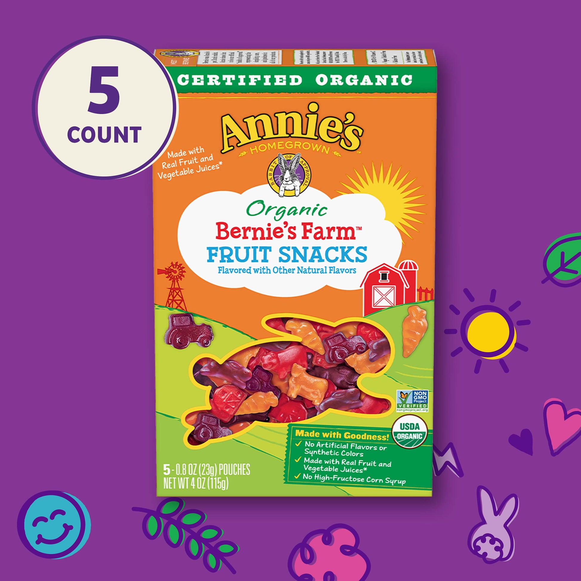 Annie'S Organic Bernie'S Farm Fruit-Flavored Snacks Are Equally Adorable And Delicious! Each Vegan Fruit Chew Packs Bold Strawberry, Cherry And Raspberry Flavors Into Fun, Farm-Shaped Gummies. The Best Part? These Fruit Snacks Are Made With Certified Organic Ingredients For Ultimate Wholesome Yumminess. Plus, They Are Made With Real Fruit And Vegetable Juices.* Everybunny In Your Family Can Enjoy The Fruity Flavors Of Annie'S Tasty Fruit-Flavored Snacks. *These Fruit Snacks Are Made With Organic Pear, Organic Carrot And Organic Sweet Potato Juice Concentrates. See Nutrition Panel For A Complete List Of Ingredients. They Are Not Intended To Replace Fruit Or Vegetables In The Diet. Annie'S Makes Products In Over 20 Family-Friendly Categories - From Fruit-Flavored Snacks And Cereal To Mac & Cheese. For Busy Bunnies And Families On The Go, We Help Make Life A Little Easier And More Delicious By Sweetening-Up Packed Lunches Or By Adding To A Savory, Yummy Dinner. Annies Is Devoted To Spreading Goodness Through Nourishing, Tasty Foods And Kindness To The Planet.