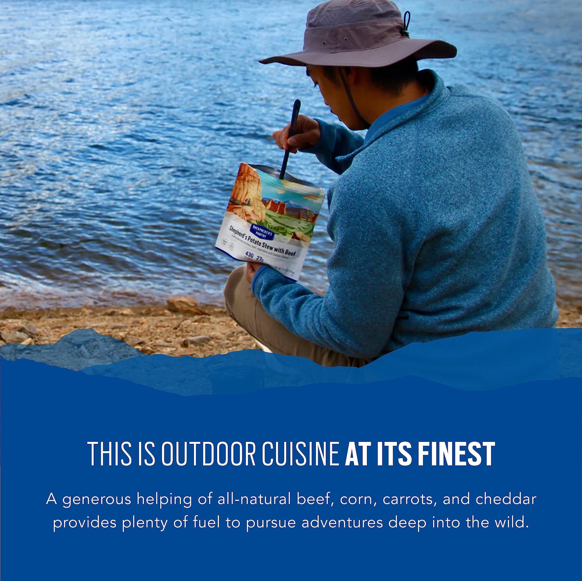 Q: What ingredients are in Backpacker's Pantry Shepherd's Potato Stew with Beef?A: The Shepherd's Potato Stew with Beef contains a hearty blend of mashed potatoes, all-natural beef, corn, carrots, and cheddar cheese, providing a comforting and nutritious meal.