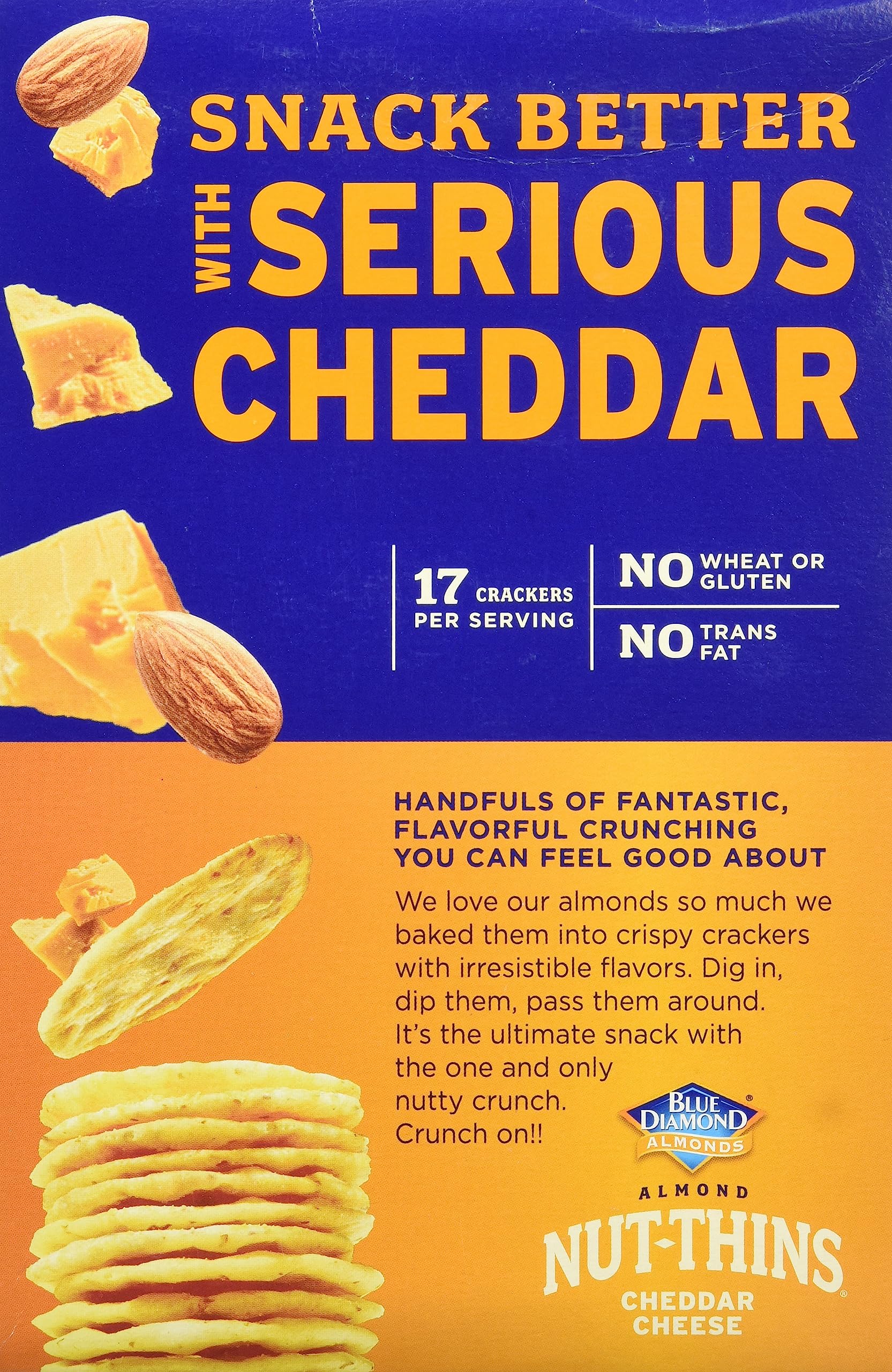 Q: What flavors do Blue Diamond Almonds Nut-Thins come in?A: Blue Diamond Almonds Nut-Thins are available in several flavors, including Cheddar Cheese, which delivers a delicious cheese taste without the added gluten.