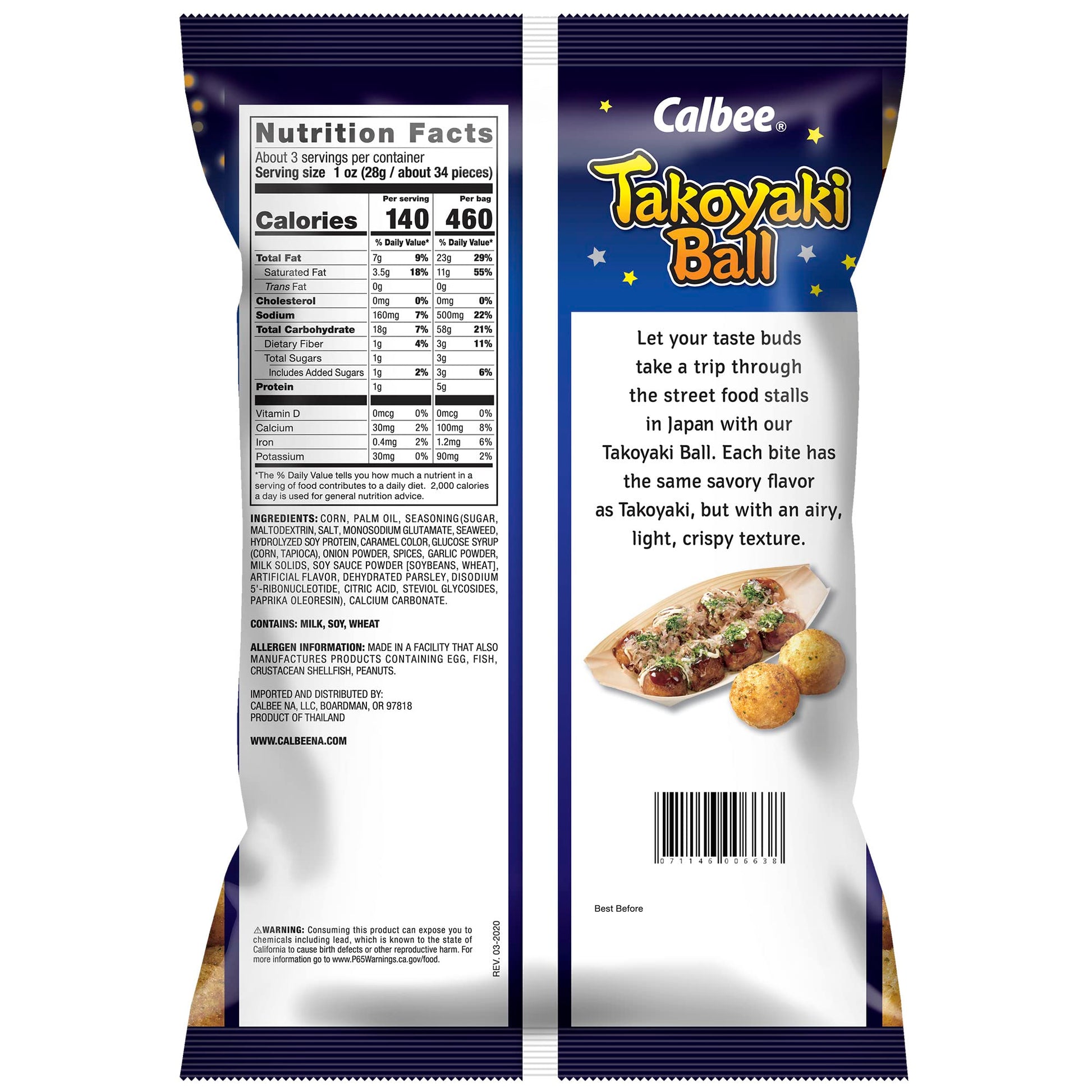 - Q: What are Calbee Takoyaki Ball Chips made of? A: Calbee Takoyaki Ball Chips are made with high-quality ingredients, ensuring a delicious and savory taste that reflects the authentic flavors of Japan. They are designed to provide a unique, crispy texture that enhances your snacking experience.