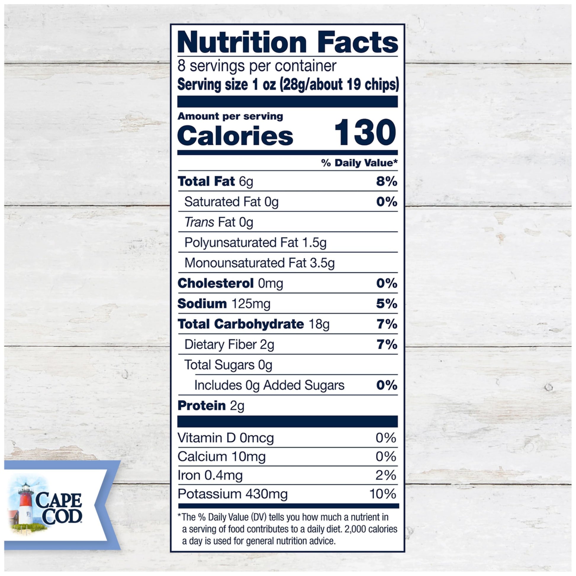 - Q: What ingredients are used in Cape Cod Less Fat Kettle Chips? A: Cape Cod Less Fat Kettle Chips are made from carefully selected potatoes, oil, and sea salt. They do not contain any artificial preservatives or flavors, and they are verified non-GMO, ensuring a quality snacking experience.