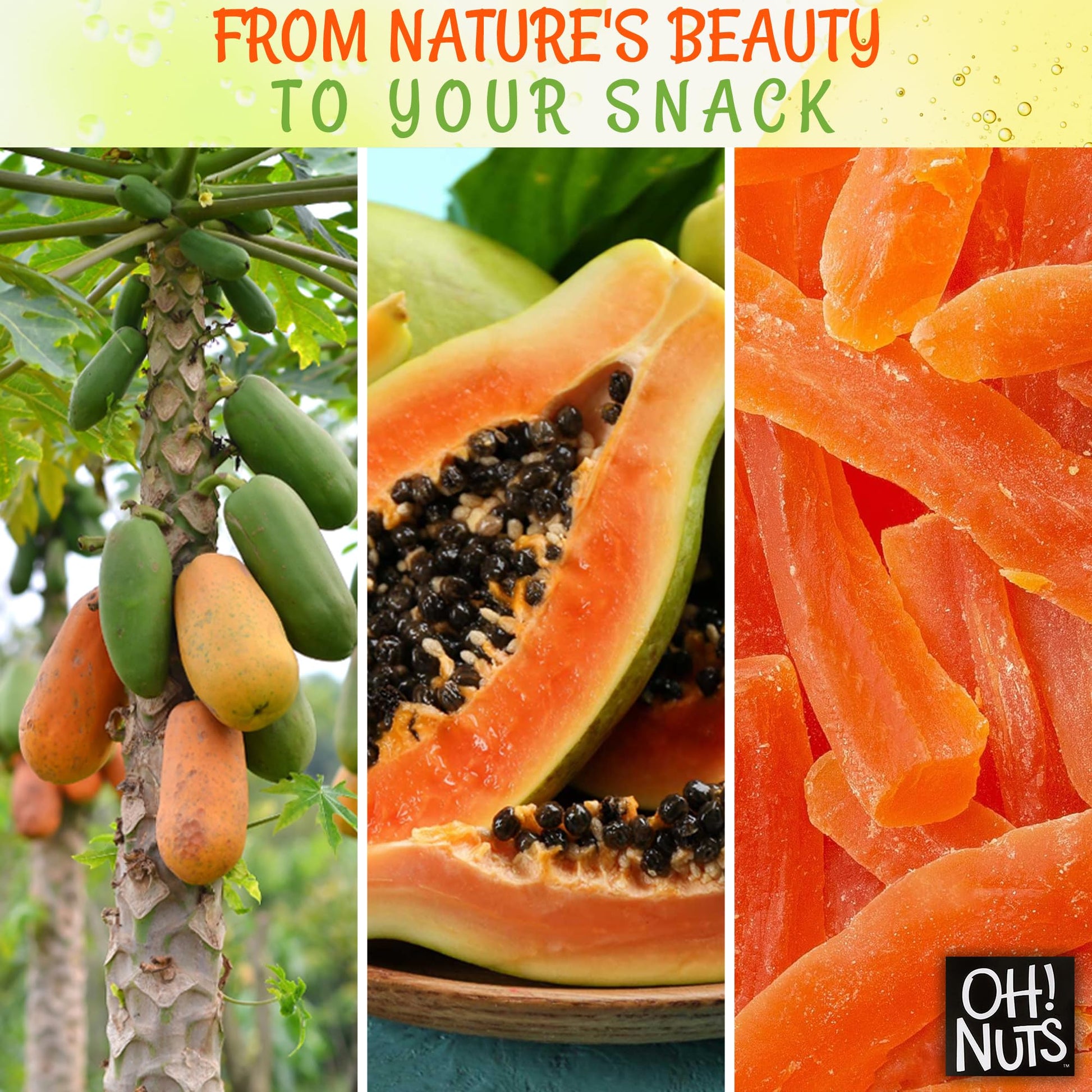 Dried Papaya Spears | 2 Lb - Dried Fruit Spears | Less Sugar Added | Dehydrated Fruit Bites | Packed In New York Zip-Seal Bag For Exceptional Freshness By Oh Nuts