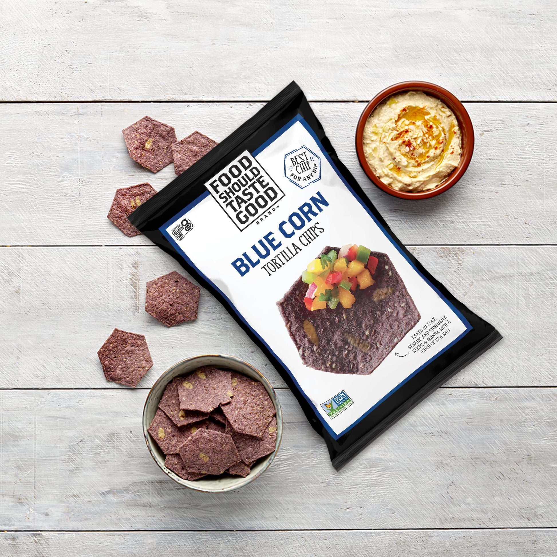 Q: What other flavors of Food Should Taste Good chips are available?A: In addition to Blue Corn Tortilla Chips, Food Should Taste Good offers a variety of flavors including Multigrain, Sweet Potato, and Black Bean, providing endless snacking options.