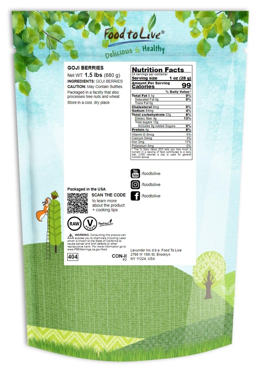 Q: Are Goji Berries suitable for vegans and those with dietary restrictions?A: Yes, Food to Live Goji Berries are unsweetened and vegan-friendly, making them a great option for those following plant-based diets or looking for healthy snacks without animal products.