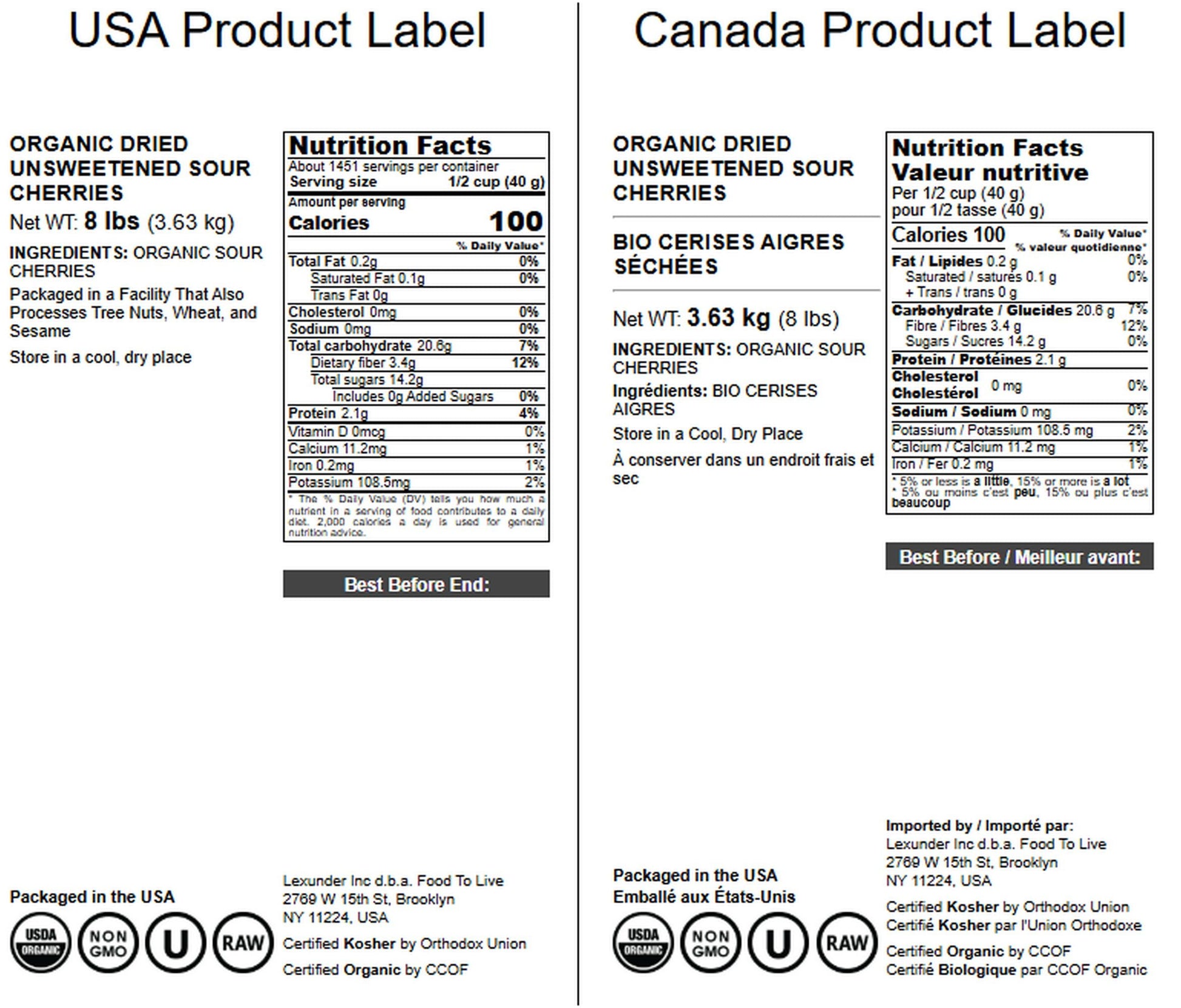 Q: Are these dried sour cherries organic and non-GMO?A: Yes, Food to Live's dried sour cherries are certified organic and non-GMO. They are naturally dried without any added sugars, oils, or sulfites, ensuring you get pure cherry goodness.