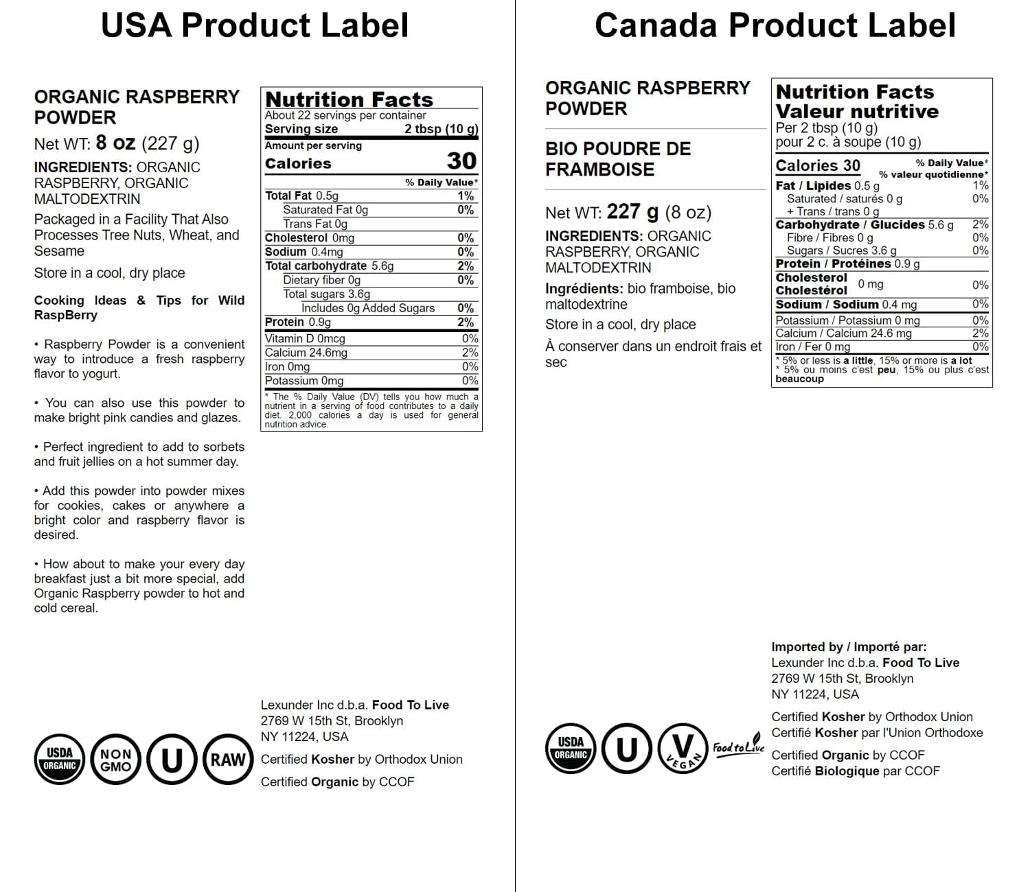 Q: Is the raspberry powder vegan and non-GMO?A: Yes, Food to Live Organic Raspberry Powder is 100% vegan and non-GMO, making it a perfect choice for those following a plant-based diet.