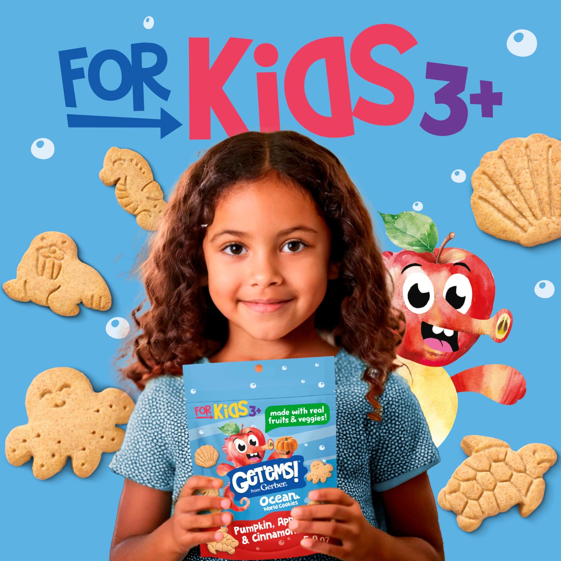 Introducing Get'Ems! From Gerber Pumpkin, Apple & Cinnamon Ocean World Cookies, The Tasty Cookie That'S Designed To Make Snack Time Both Delicious And Nutritious. Dive Into A Sea Of Yummy Goodness With Our Delightful Marine Friends, Bringing A Splash Of Tasty Nutrition In Every Crunch. Crafted By The Nutrition And Quality Experts At Gerber, These Kids Snacks Are Baked With Real Veggies And Fruits And Are A Great Lunch Box Option. Each Bite Not Only Excites Their Taste Buds But Also Provides Essential Nutrients Like Iron, Which Supports Brain Development, And Vitamin E. We Believe In Providing Only The Best For Your Little Ones, Which Is Why Our Cookies Contain No Artificial Flavors Or Artificial Sweeteners, No Artificial Preservatives, And No Gmo Ingredients. Who Says Nutrition Can'T Be Fun? Get'Ems! From Gerber Adds Excitement To Snack Time With Our Ocean-Themed Cookies That Come In The Shape Of Friendly Marine Animals.