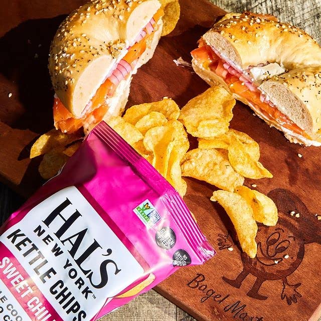 Q: What flavors do Hal's Kettle Cooked Potato Chips come in?A: Hal's New York Kettle Cooked Potato Chips are available in a variety of flavors, including Sweet Chili, which offers a perfect balance of sweet and savory.