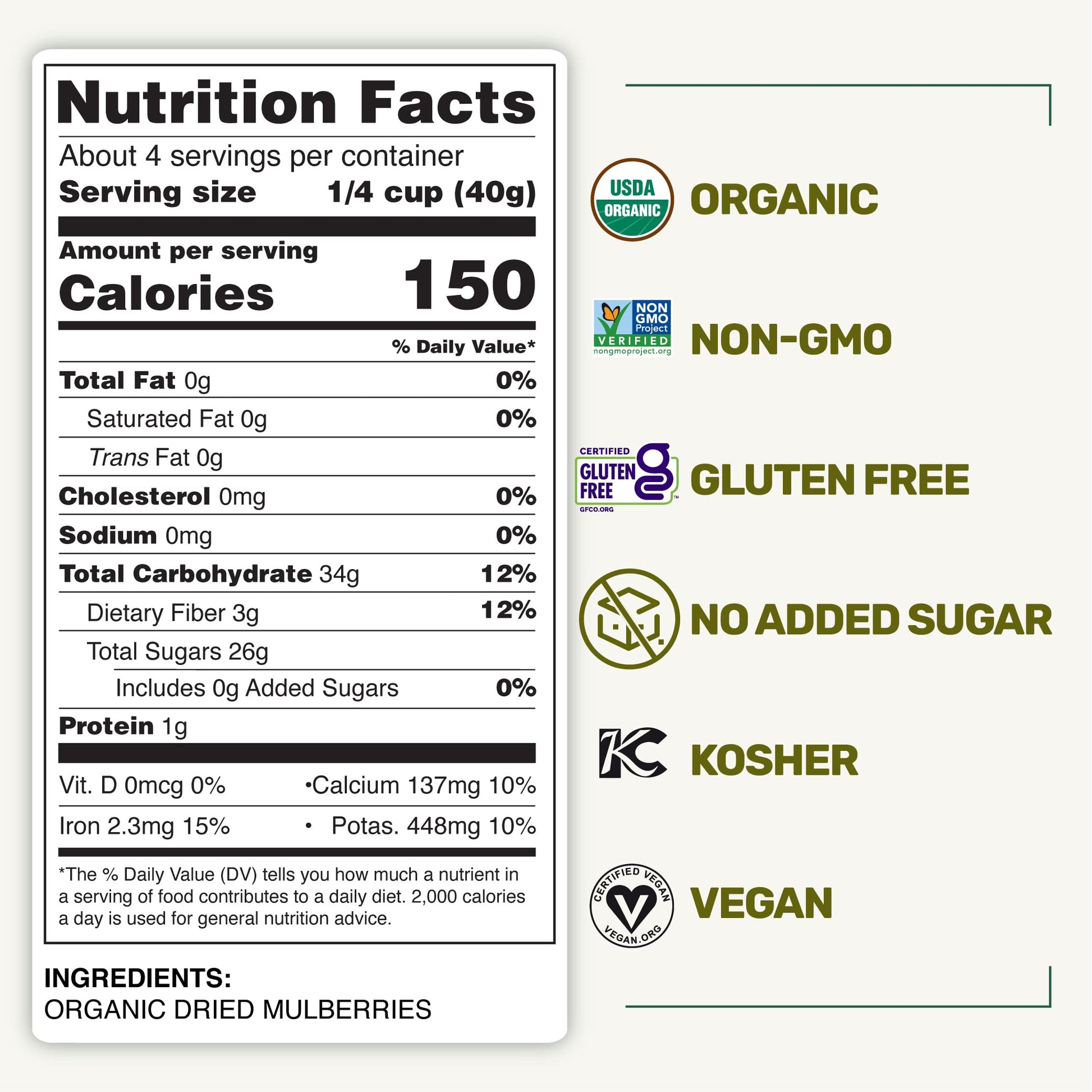 - Q: Are Happy Village Organic Dried Mulberries suitable for special diets? A: Yes, these mulberries are certified organic, non-GMO, gluten-free, raw, and vegan. They contain no added sugar or preservatives, making them suitable for a variety of dietary preferences and restrictions.