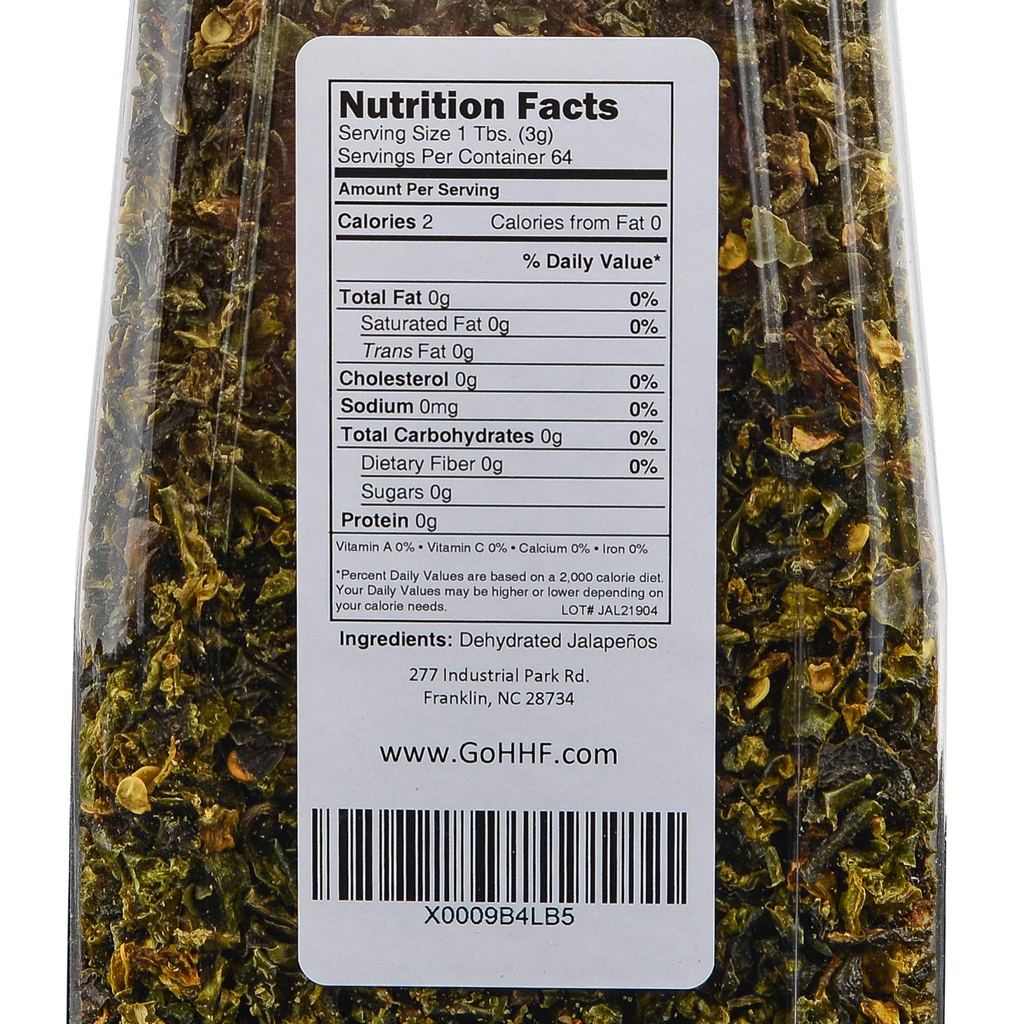 Our Jar Size Contains A Full Quart Of Zesty Jalapenos And Comes With Our Freshness Seal. Use Dehydrated Jalapeno Peppers To Add A South American Flair To Any Dish. Our Dehydrated Jalapeno Peppers Have A ''Zing'' To Them, But They Are Not Overpowering. Add A Tablespoon To Chili, Mexican Corn Chowder Or Any Dish To Give It The Spice Of Life. One Pound Of Our Dehydrated Jalapenos Equal Seven Pounds Of Fresh And Because They Are Dried, You Can Have Them Ready For Use At Any Time.