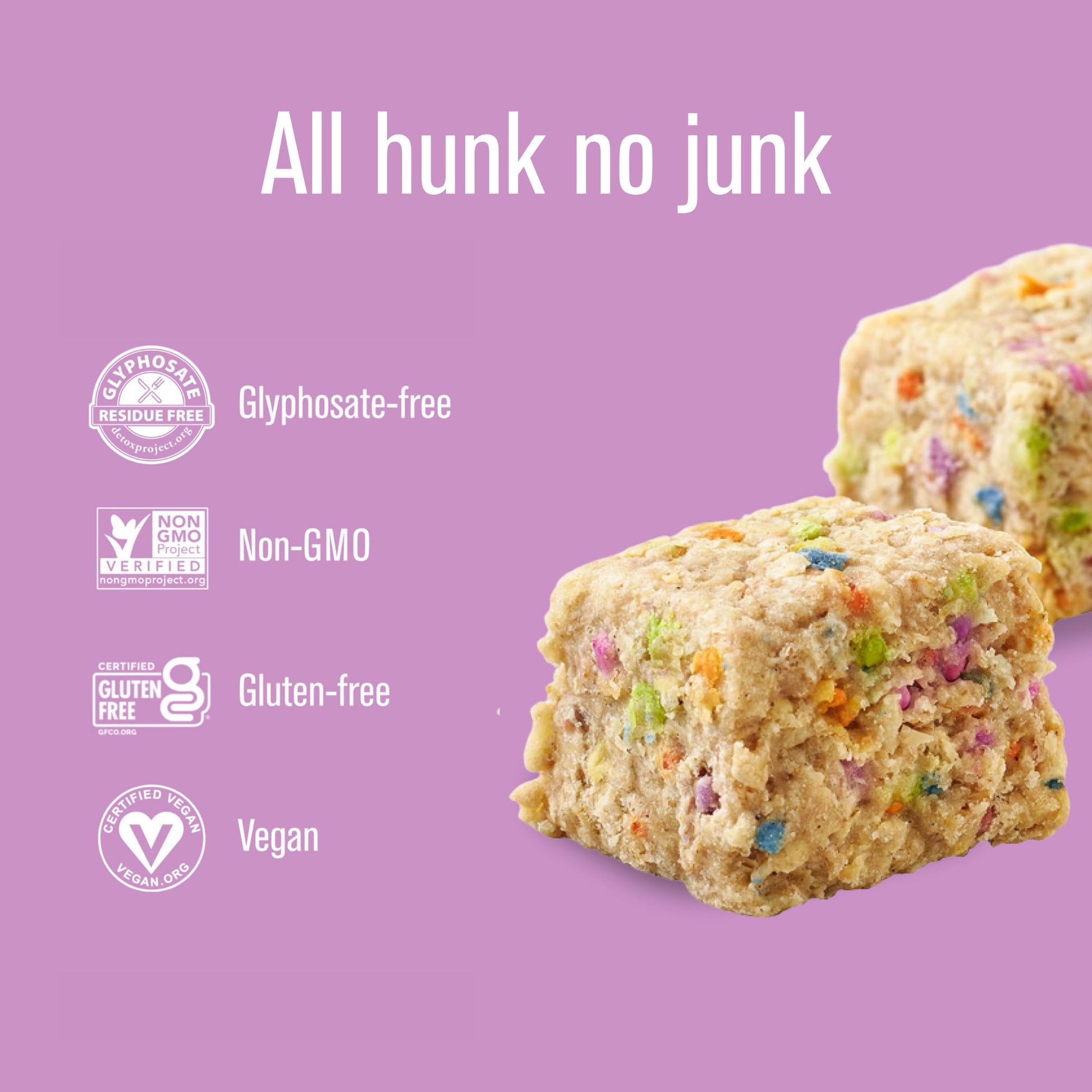 - Q: How can I enjoy Heavenly Hunks Birthday Cake snacks? A: You can enjoy Heavenly Hunks as a healthy on-the-go snack while traveling, watching TV, or after sports and exercise. They are perfect for sharing with friends or enjoying as a guilt-free treat.