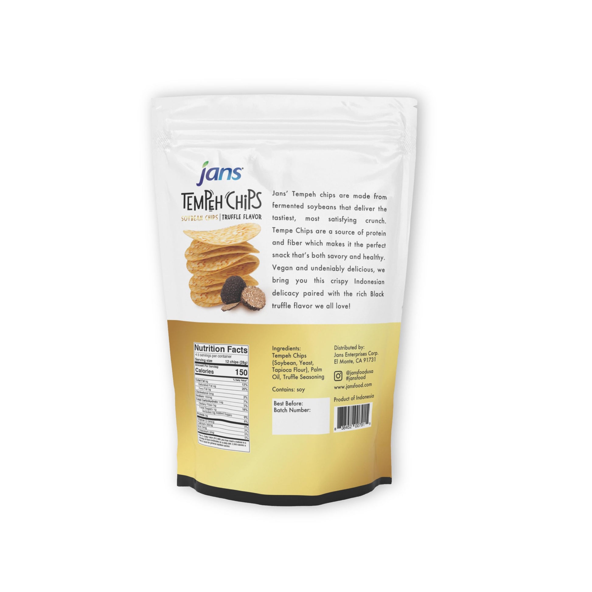Prepare Your Taste Buds For An Extraordinary Journey With Our Black Truffle Tempeh Chips! Crafted From Premium Quality Tempeh, These Chips Are Infused With The Distinctive Aroma And Flavor Of Black Truffle, Creating A Snack That'S Truly Unforgettable. At Jan'S, We Believe That Snacking Should Be A Delightful Experience That Satisfies Both Your Cravings And Your Nutritional Needs. That'S Why We'Ve Created Our Tempeh Chips, A Gourmet Twist On A Beloved Southeast Asian Staple.Tempeh, A Traditional Indonesian Delicacy, Is Made From Fermented Soybeans And Tapioca Flour, Offering A Vegan-Friendly Protein Alternative That'S Packed With Flavor And Nutrients. We Understand The Importance Of Transparency And Integrity When It Comes To Food, Which Is Why Our Tempeh Chips Are Made With All-Natural Ingredients And Free From Any Artificial Additives Or Preservatives. You Can Snack With Confidence, Knowing That You'Re Enjoying A Gourmet Delight That'S Not Only Delicious But Also Wholesome. Our Tempeh Chips Are Vegan And Gluten-Free, Making Them Accessible To A Wide Range Of Dietary Preferences And Restrictions. Each Bite Of Our Black Truffle Tempeh Chips Is A Symphony Of Flavors, With The Earthy Richness Of Black Truffle Perfectly Complementing The Nutty Undertones Of Tempeh. It'S A Gourmet Experience That'S Sure To Tantalize Your Taste Buds And Leave You Craving More.