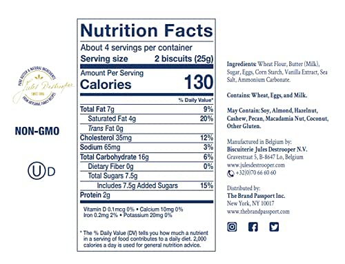 Q: What are Jules Destrooper Butter Crisps made of?A: Jules Destrooper Butter Crisps are made with high-quality natural ingredients, including pure butter, which contributes to their melt-in-your-mouth texture. They contain no artificial flavors, colors, or preservatives.