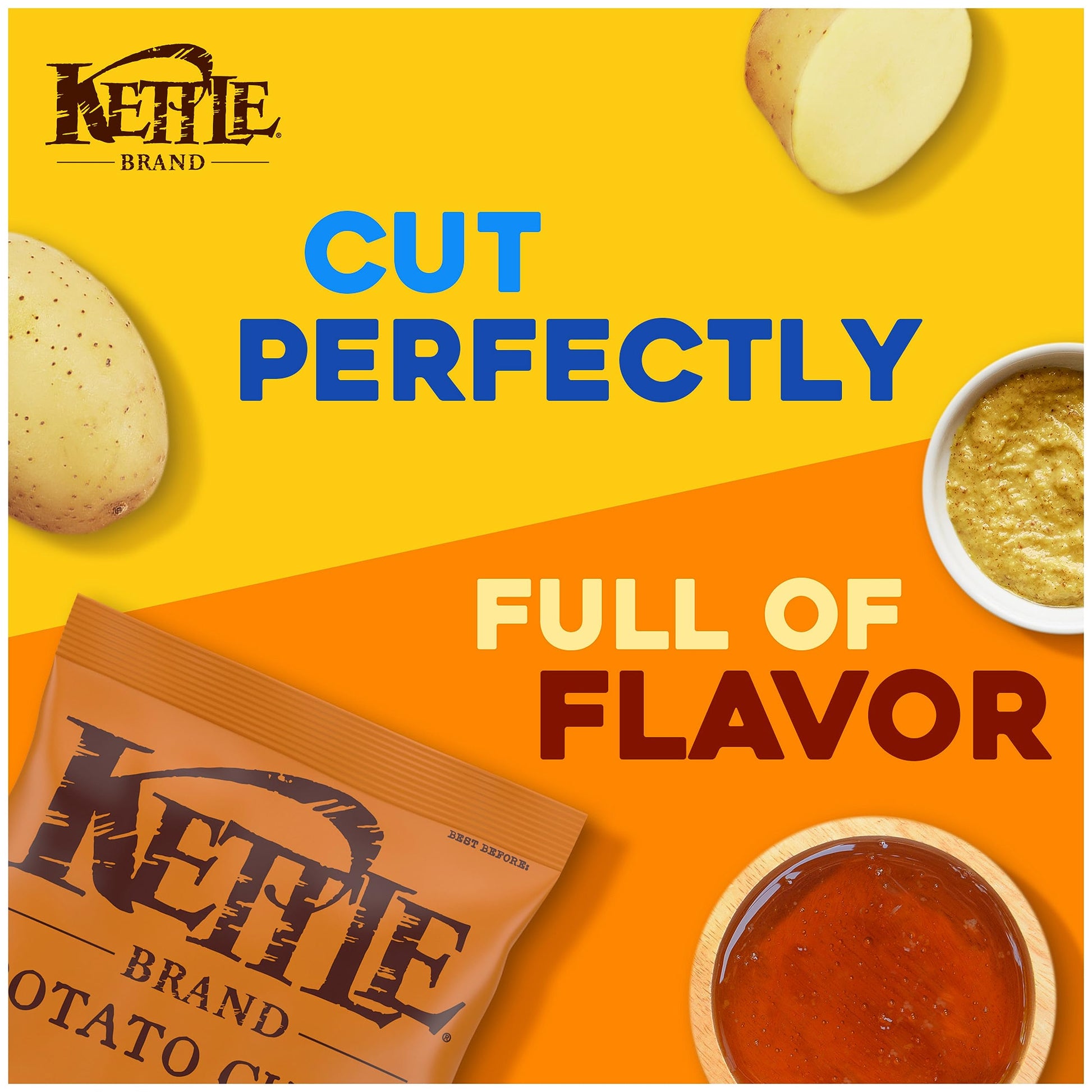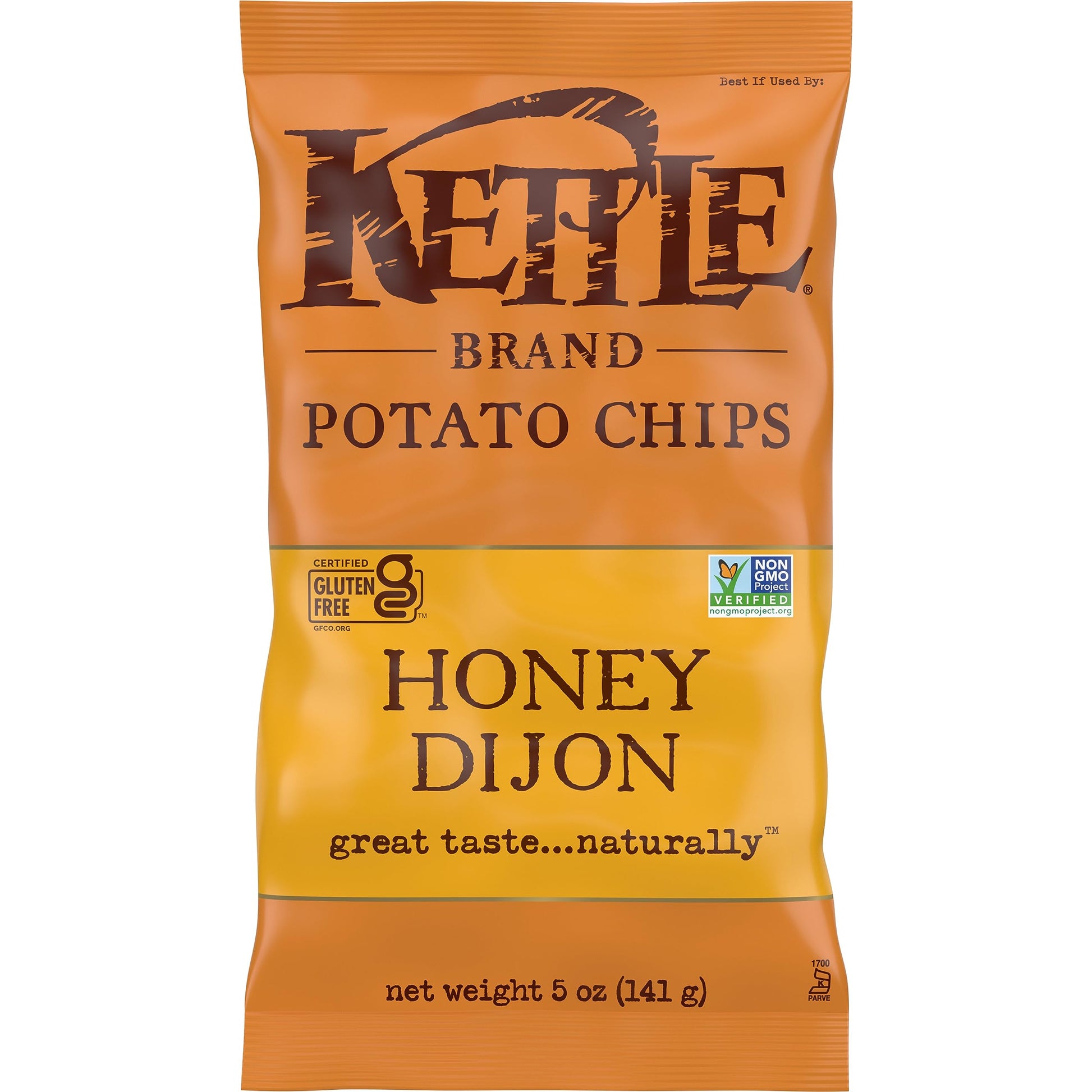 Kettle Brand Honey Dijon kettle chips start with a search for undisputed potato excellence. Determined not to disrupt the flawless, spudsy goodness, these beauties are kettle cooked, skin on, one batch at a time. Try the incredible sweet and savory flavor and you just might fall in love. Dijon mustard is tangy, sophisticated, and just a little bit snooty. Honey is smooth, sweet, and more than a little wild. Together, they’re a match made in heaven. When you open a bag of our Kettle Brand potato chips, you know you're getting incredible kettle chips made with authentic recipes by real people. From their farms to our kitchens and then to your home, the time and attention every Kettle Brand worker puts into their products is care you can trust. All that, plus Kettle Brand chips deliver a delicious snack that’s non-GMO Project Verified, and Certified Gluten-Free. You can share this 5-ounce bag of chips with a friend, but we won't blame you if you keep them all for yourself.