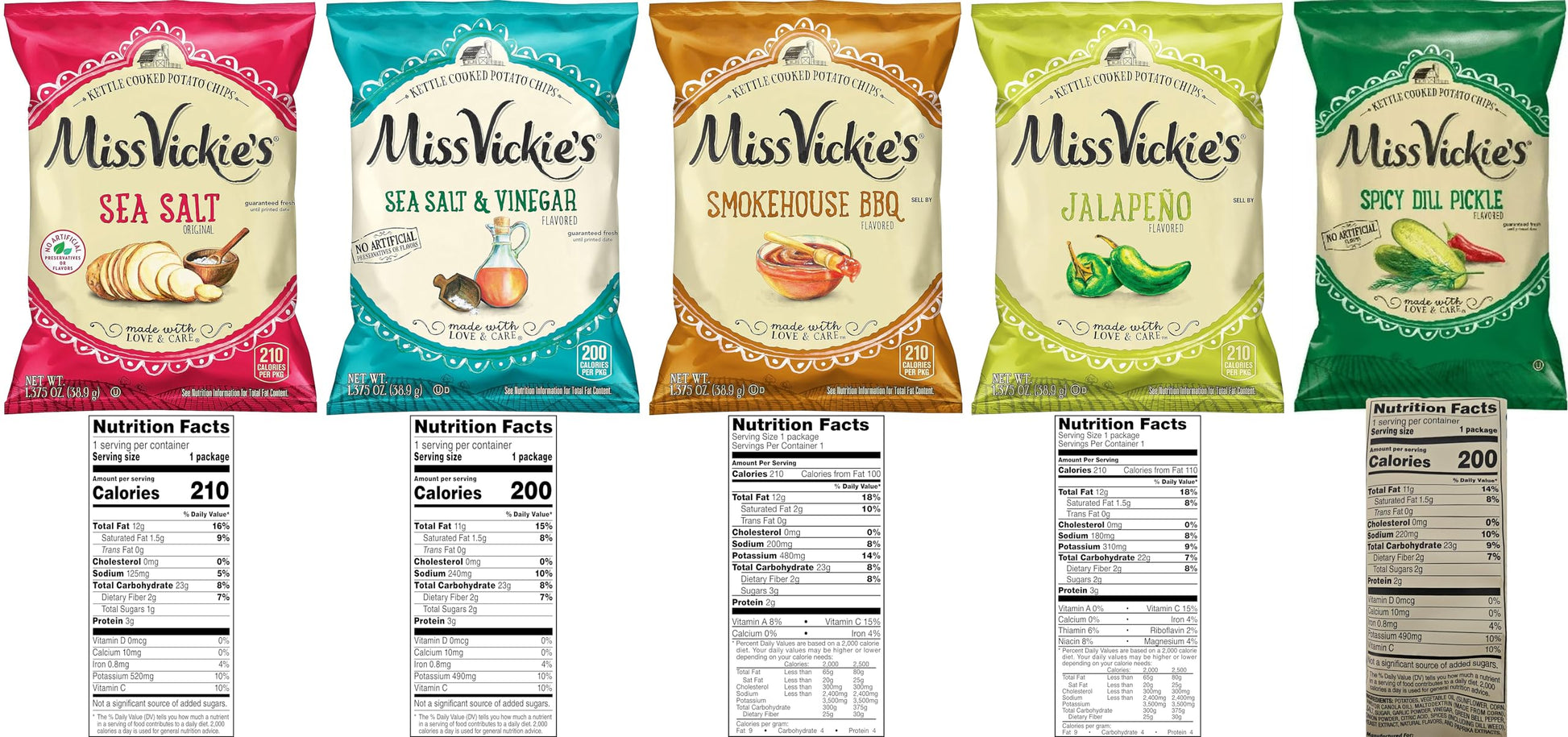 - Q: How large is each bag of Miss Vickie's Kettle Cooked Potato Chips? A: Each bag of Miss Vickie's Kettle Cooked Potato Chips is 1.375 ounces. This size is perfect for a single serving or for sharing during gatherings.