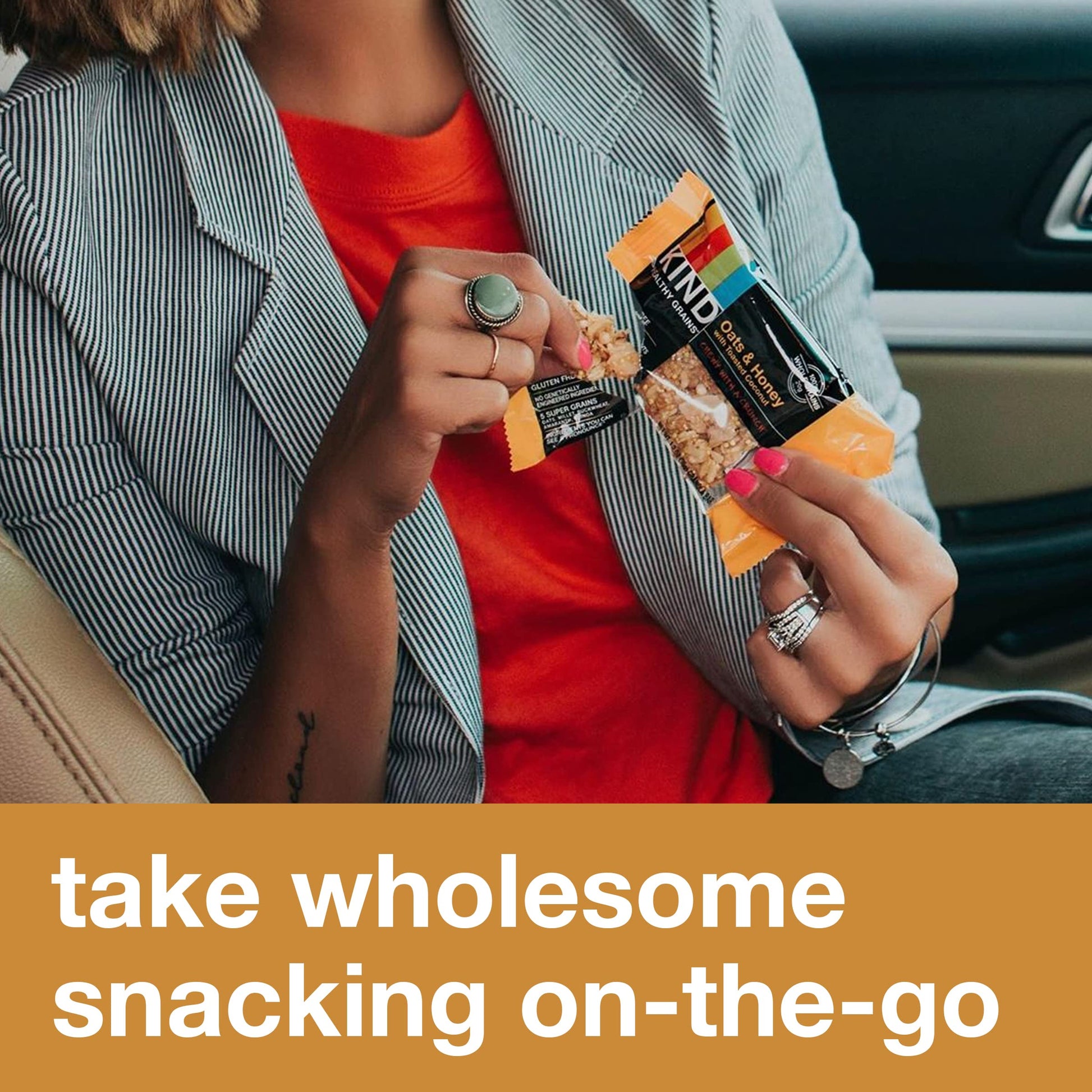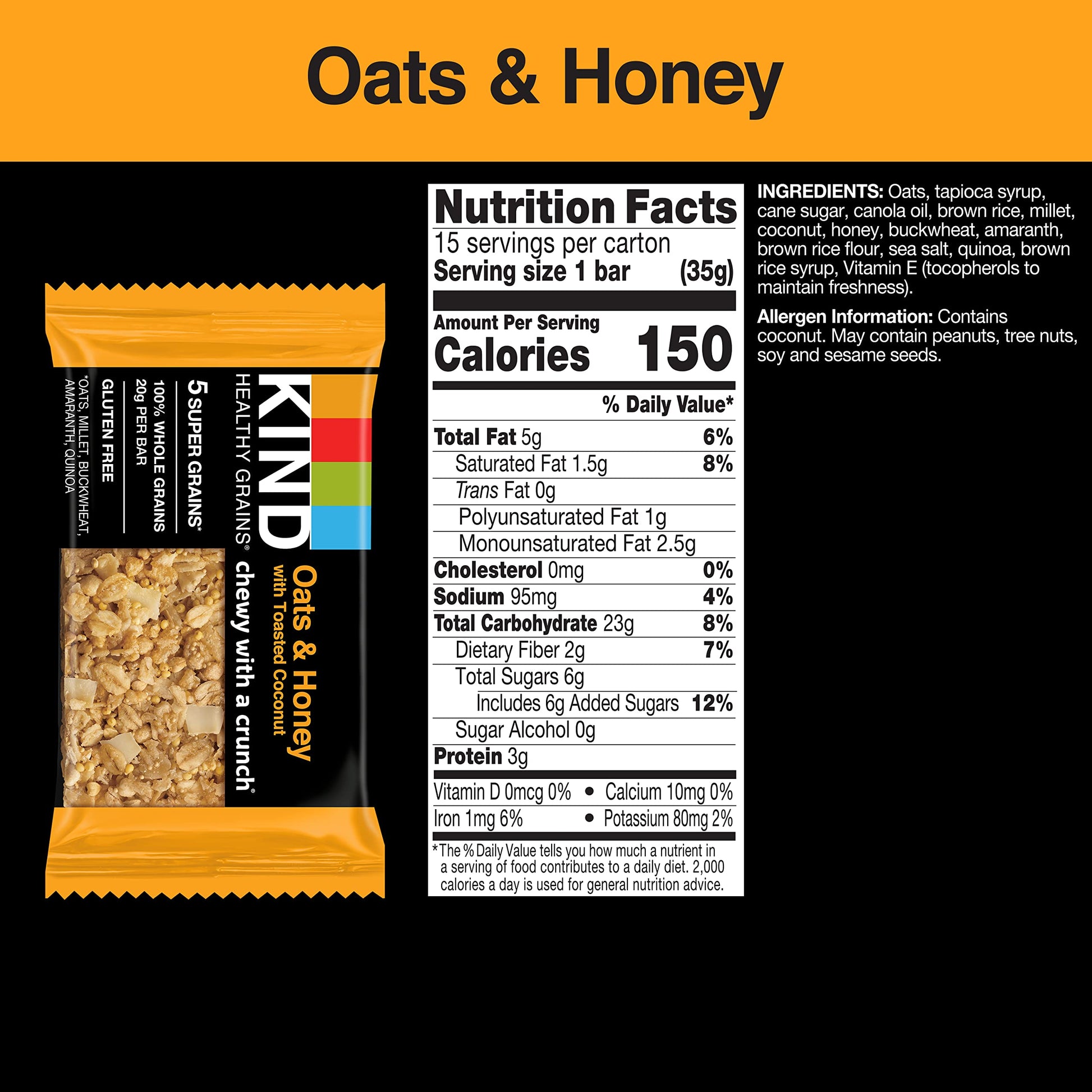 Q: How many whole grains are in each KIND bar?A: Each KIND Healthy Grains Oats & Honey bar contains 18-20 grams of whole grains, ensuring a good source of healthy fiber.