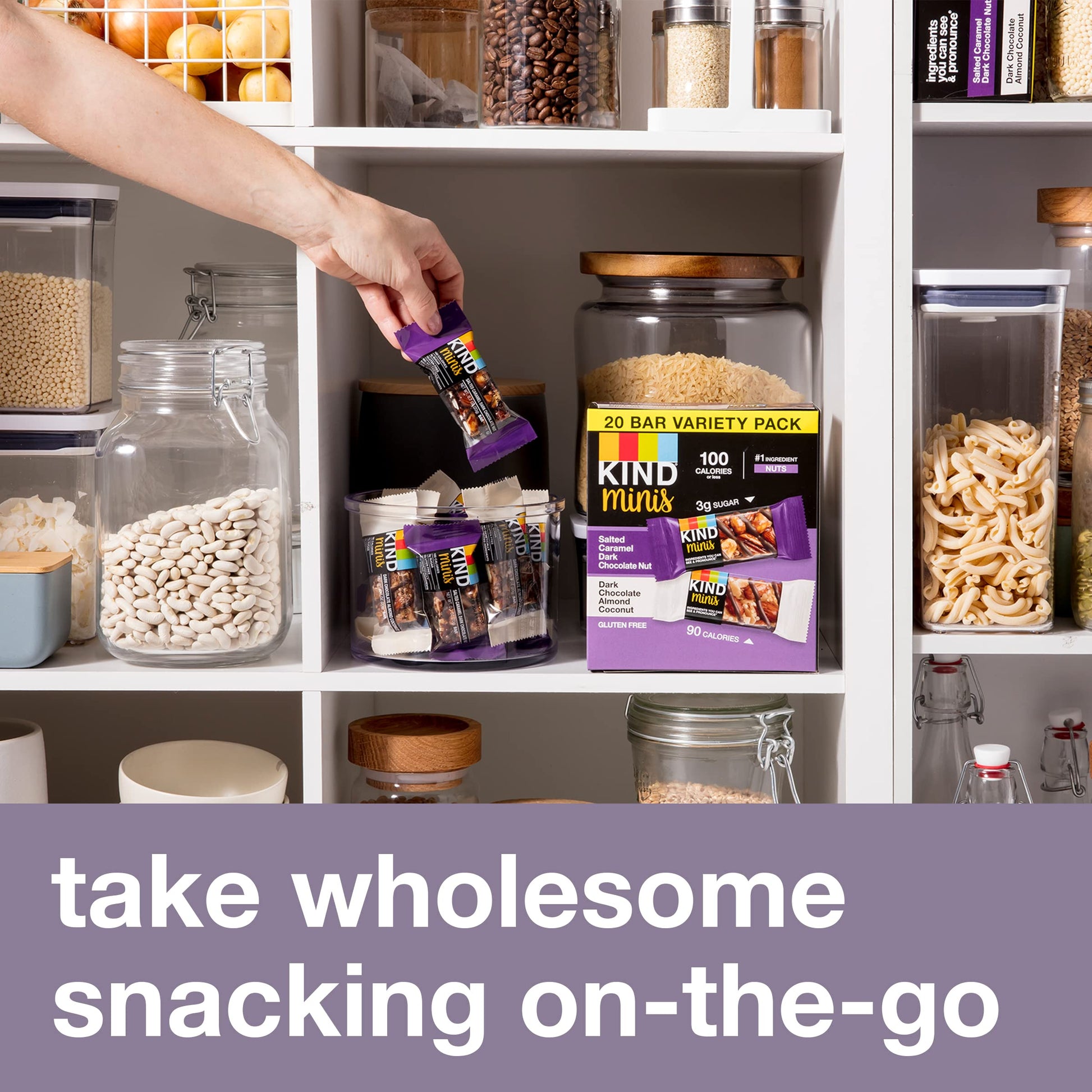 Q: What occasions are suitable for KIND Minis?A: KIND Minis are perfect for a variety of occasions, including afternoon snacks at the office, on-the-go treats, or as healthy options for parties and gatherings.