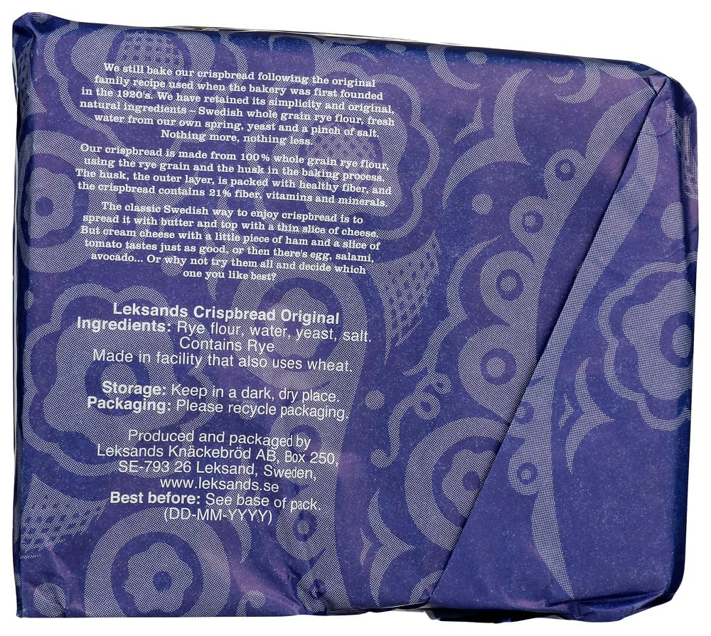 Q: What are the ingredients in Leksands Original Triangle Crispbread?A: Leksands Original Triangle Crispbread is made from 100% whole grain rye flour, making it a healthy choice for those seeking a nutritious snack.