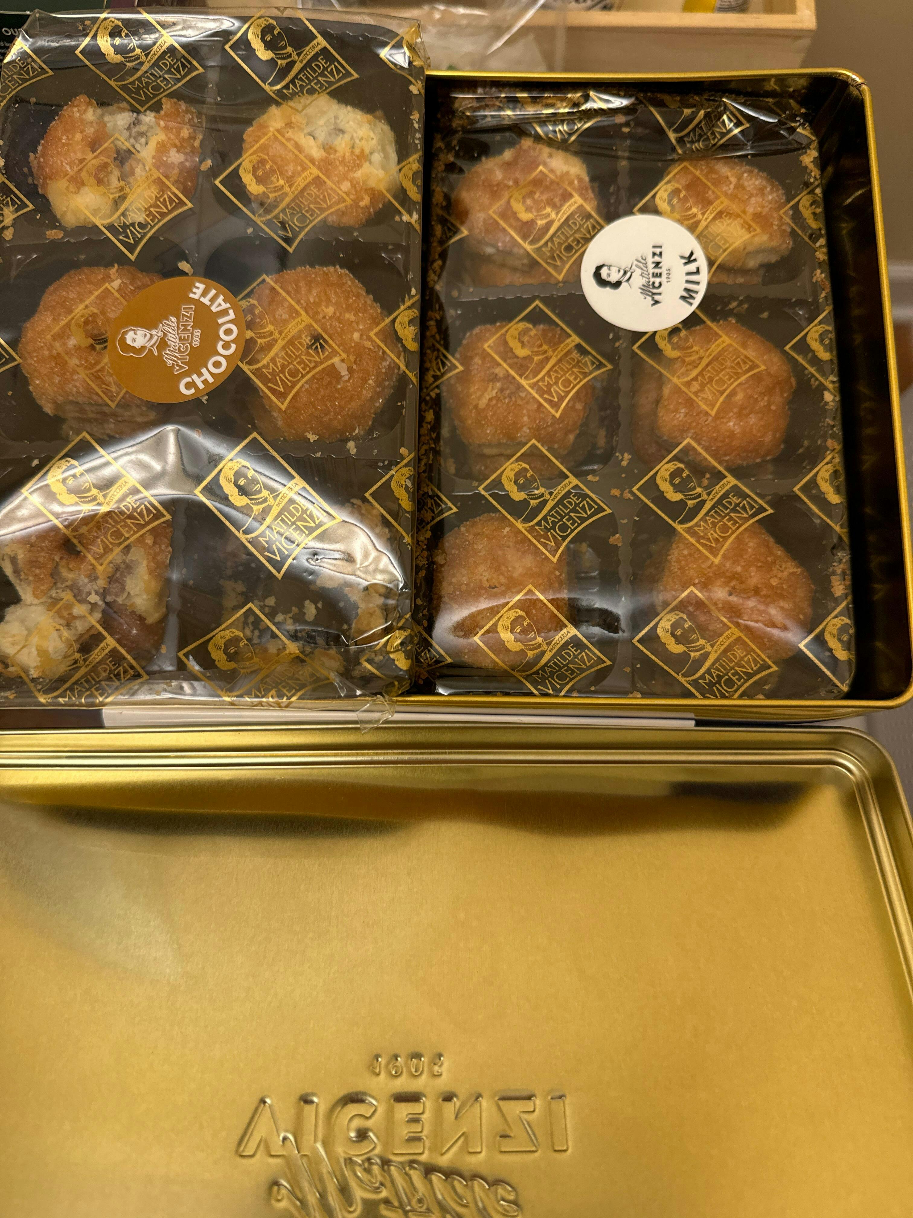 Enjoy Matilde Vicenzi's rich selection of eight delicious patisseries, creamy filled pastries and crispy cookies, packaged in a 32 oz gift tin decorated with scenic views of Italy! Made in Italy. Kosher Dairy.