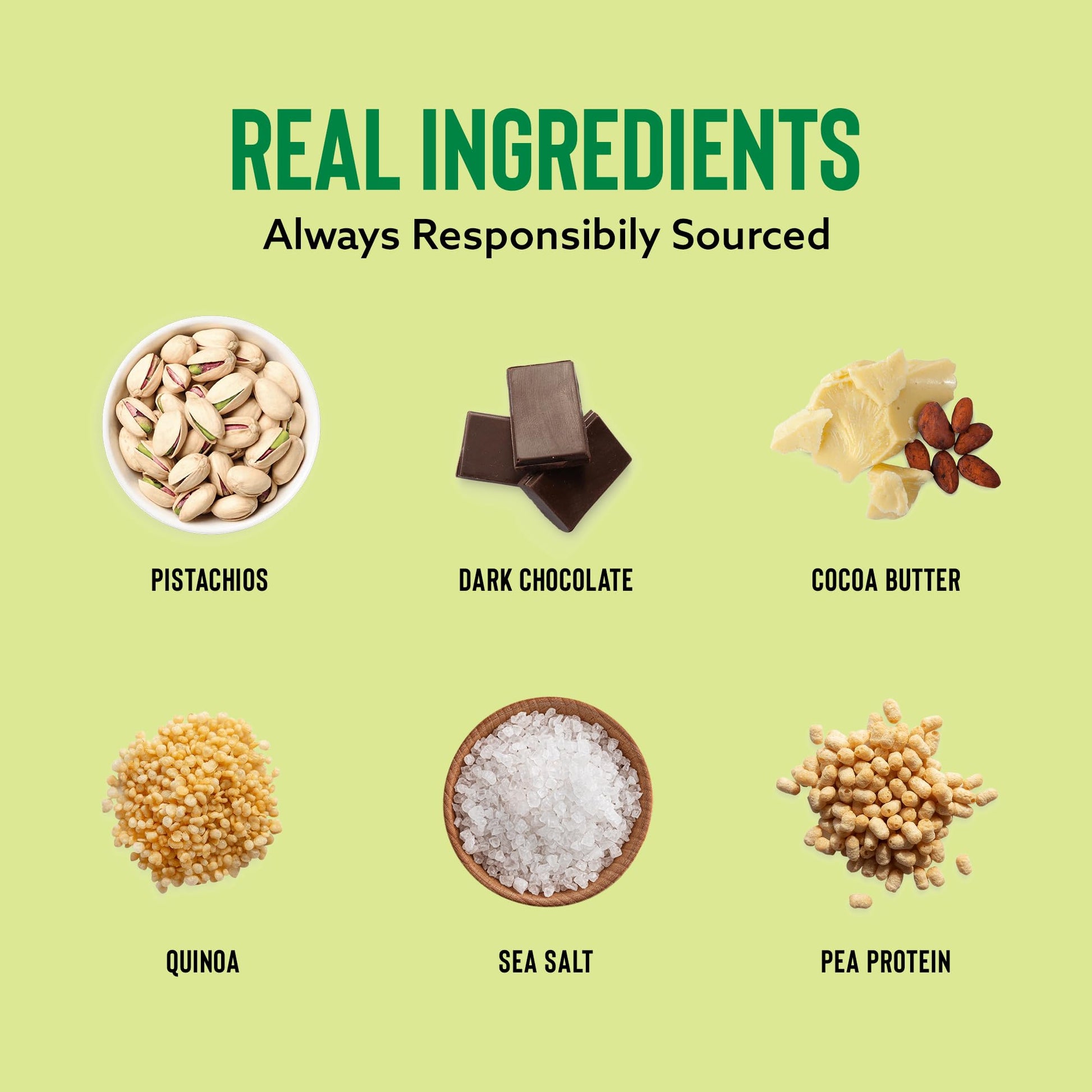 Q: What are the main ingredients in Mezcla Vegan Protein Bars?A: Mezcla Vegan Protein Bars are made with high-quality ingredients including pea protein, dark chocolate, pistachios, cocoa butter, quinoa, and vanilla extract. All ingredients are plant-based, gluten-free, and non-GMO.
