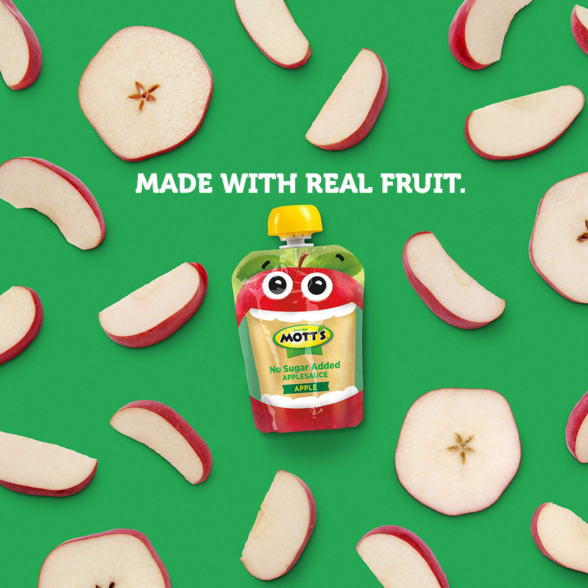Q: Are Mott's applesauce pouches suitable for kids?A: Yes, Mott's No Sugar Added Applesauce pouches are ideal for kids. The clear pouches are designed for mess-free snacking, making them a great addition to lunchboxes or for on-the-go meals.