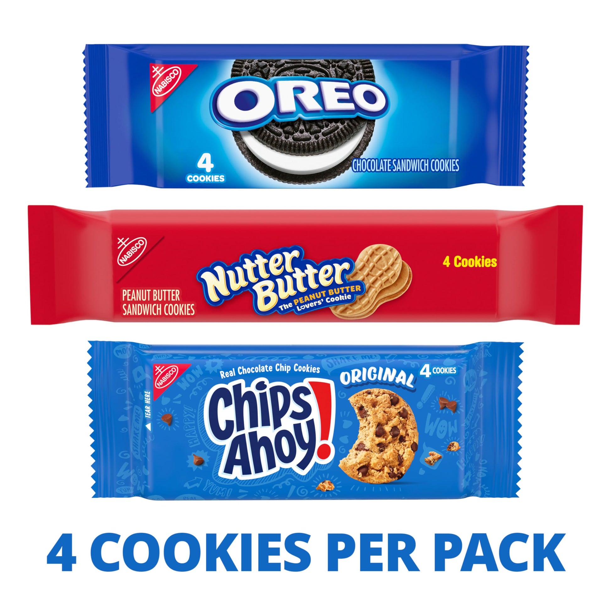 This Cookie Variety Pack Includes Oreo, Nutter Butter And Chips Ahoy! Cookies For Sweet Snacks You Can Enjoy On-The-Go. These Assorted Snacks Have Delicious Flavors, And They Come In Convenient Cookie Packs For Portability. Each Oreo Cookie Snack Pack Includes Four Chocolate Sandwich Cookies With Delicious, Original Creme Filling. Chips Ahoy! Cookies Are Crunchy And Packed With Yummy Chocolate Chips For A Tasty Snack With Four Cookies In Each Pack. Nutter Butter Peanut Butter Sandwich Cookies Have A Smooth Filling For Satisfying Sweetness In Every One Of The Four Cookies In Each Pack. These Assorted Cookies Are Great On The Go Snacks. Tuck These Snack Size Cookies Into School Lunchboxes For Sweet Lunch Snacks, Keep Some In Your Desk For Office Snacks Or Toss Them In Your Purse Or Backpack As Tasty Travel Snacks. Bulk Cookies Also Make Great Party Favors, Stocking Stuffers, Easter Basket Fillers Or Sweet Treats For Halloween Trick Or Treating. These Snack Pack Cookies Are Individually Portioned To Maintain Freshness And Flavor.