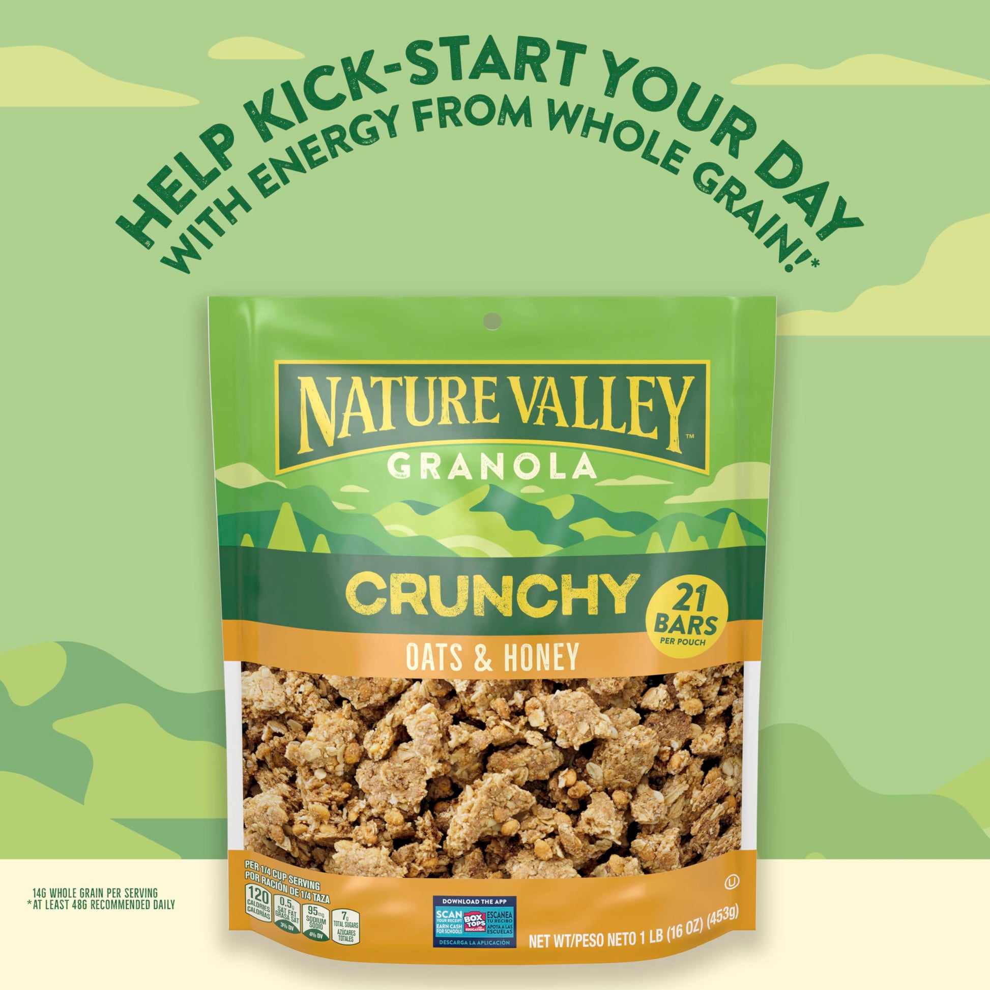 Refuel With The Wholesome Goodness In Every Bag Of Nature Valley Granola Oats And Honey Crunchy Granola. Made With Whole Grain Oats, These Granola Clusters Are Bursting With The Flavor Of Nature Valley Oats And Honey Granola Bars. This Version Is A Loose Granola Cereal Made With The Same Honey Taste For A Delicious Snack Or Part Of Breakfast On The Go. Each Serving Helps Satisfy Hunger With At Least 12G Of Whole Grain (At Least 48G Recommended Daily). Plus, The Honey Granola Bites Are Made With No High Fructose Corn Syrup, No Artificial Flavors And No Colors From Artificial Sources. Nature Has Never Tasted So Good. Sprinkle A Handful Of Granola Cereal Over A Yogurt Parfait For Serious Crunch. Pour A Bowlful With Milk For An Irresistible Breakfast Cereal. Add Your Own Fruits And Nuts For Diy Trail Mix. Or Divvy Up The Whole Bag Into School Snacks. Just Reseal This 16 Ounce Bag Of Loose Granola Cereal For Energy You Can Take On The Go. At Nature Valley, We Believe That What You Put In Is What You Get Out. So Wherever The Moment Takes You And Your Family, You Can Rely On Our Great-Tasting Snacks To Help Keep You Going.